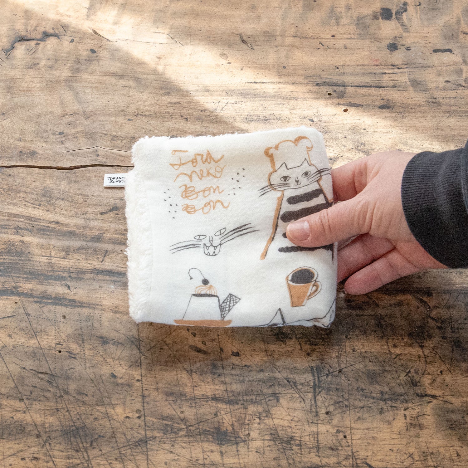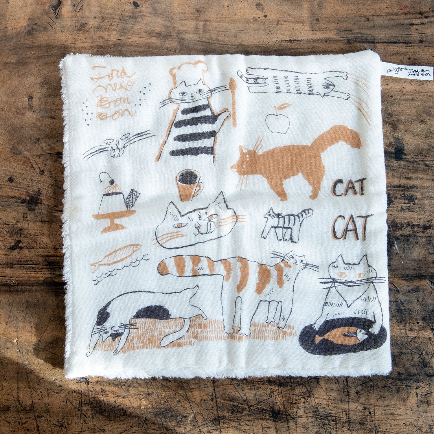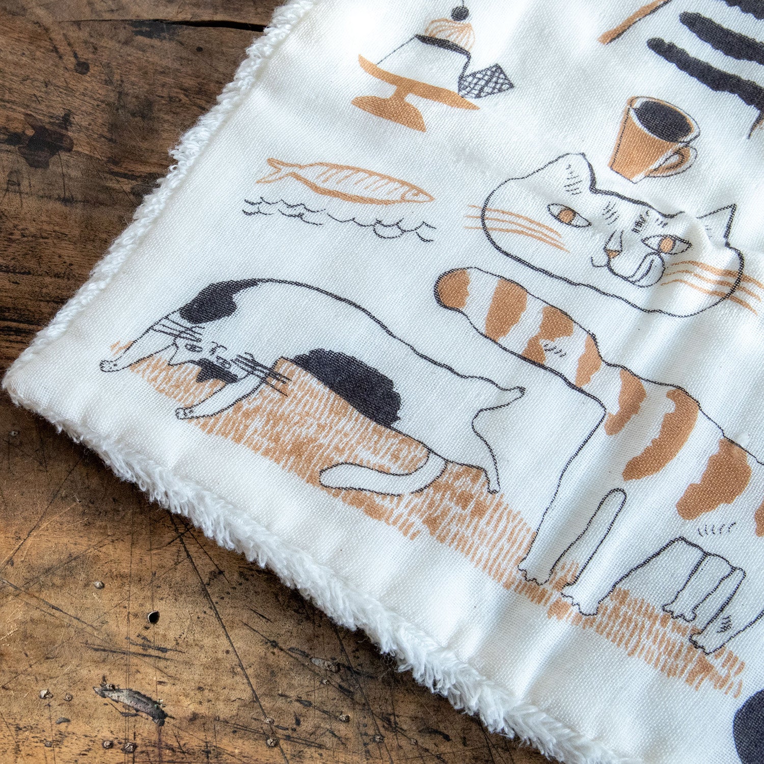 旅するレストラン・トラネコボンボンを主宰する料理人、中西なちおさんデザインのパイルガーゼハンカチです。