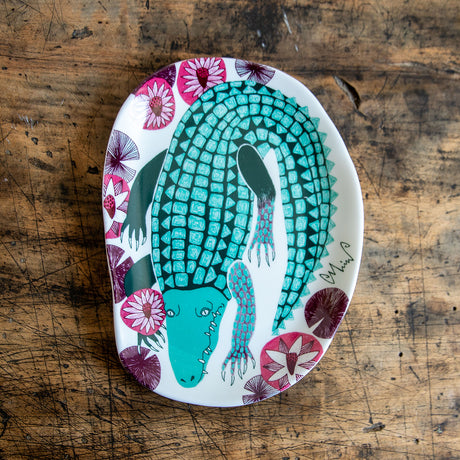 moritaMiW/モリタミウ 小皿 ワニ「睡蓮の川の鰐」