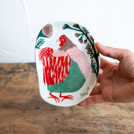 moritaMiW/モリタミウ 小皿 ニワトリ「裏庭の草むらの鶏」