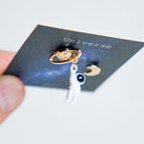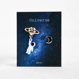 宇宙飛行士が土星にぶらぶらぶら下がって