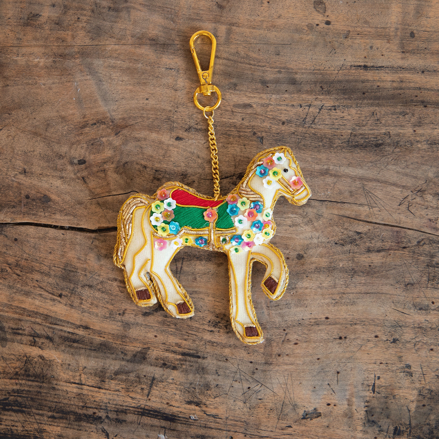 COTTAGE/コテージ ザリ刺繍 キーホルダー ホワイトホース