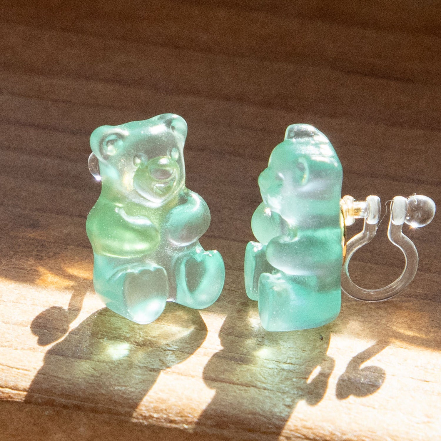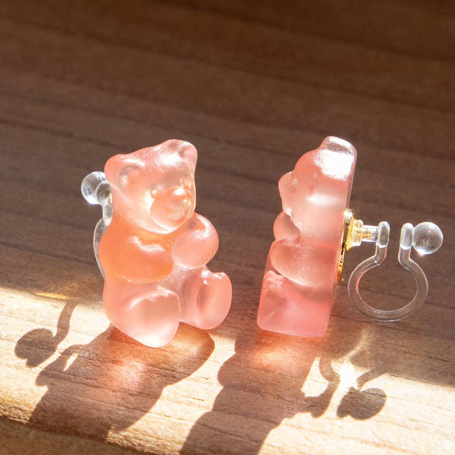 アメリカのお菓子のような、POPなカラーとクマの形がキュートなイヤリングです。