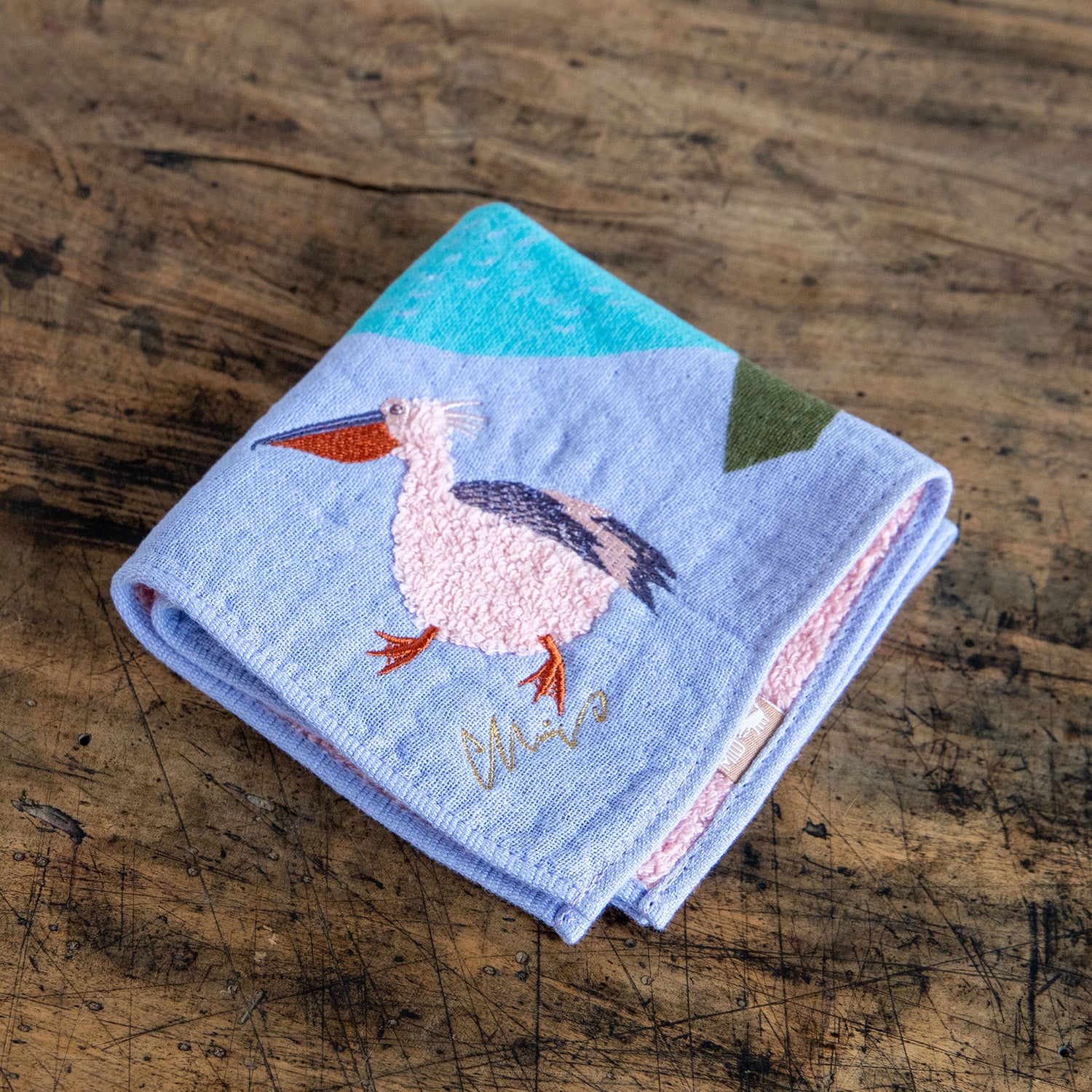moritaMiW/モリタミウ ガーゼパイルハンカチ 湖畔ペリカン