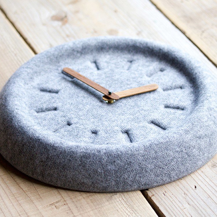 時間に追われていませんか? そんな人には時計を見るたびほっこりする、こんな壁時計はどうでしょうか。北欧デザインならではのシンプルで研ぎ澄まされたデザイン。だけど、フェルトの素材が柔らかくてほっこり、長針短針も落ち着いたオークでで出来ていてほっこり。時の刻みまでほっこりしてくれそうですね。