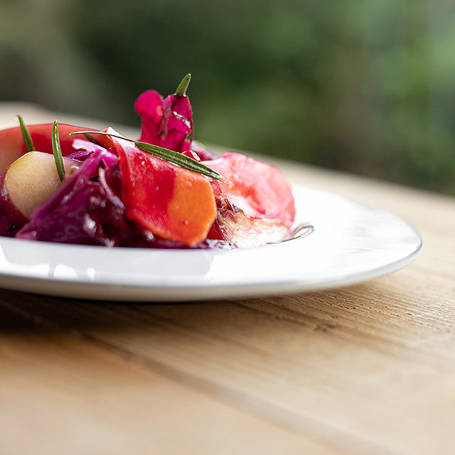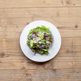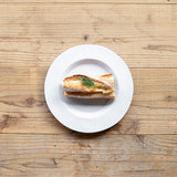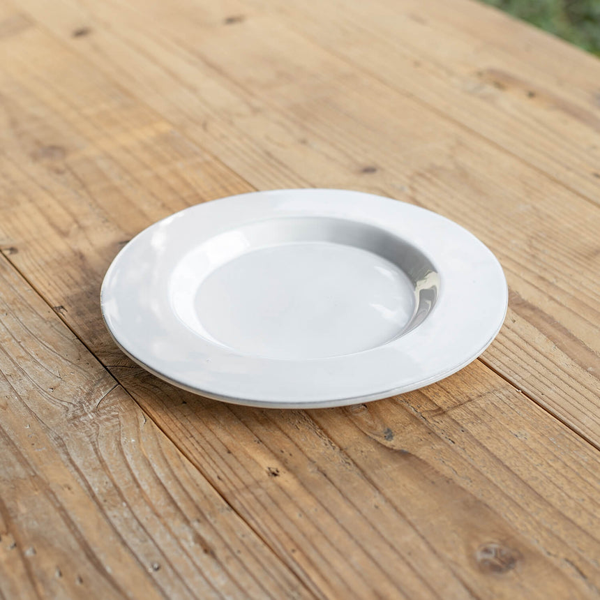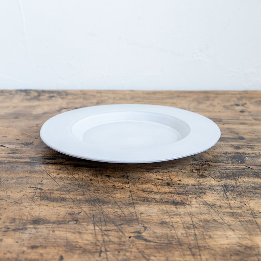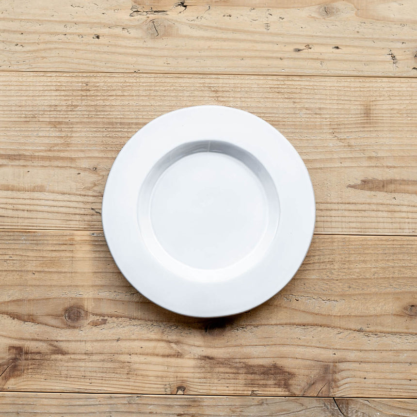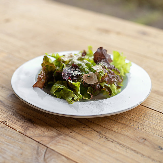 存在感のあるリムがアクセントになった、厚手の使いやすいサラダプレートです。サラダやパスタを取り分けたり、デザートを乗せるのに十分な大きさです。シンプルなカラーと程よい高さのリムのアクセントが上品です。
