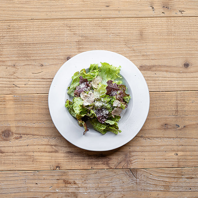 リムが程よいアクセント。ブロカントの食器のような静かな佇まいのサラダプレート