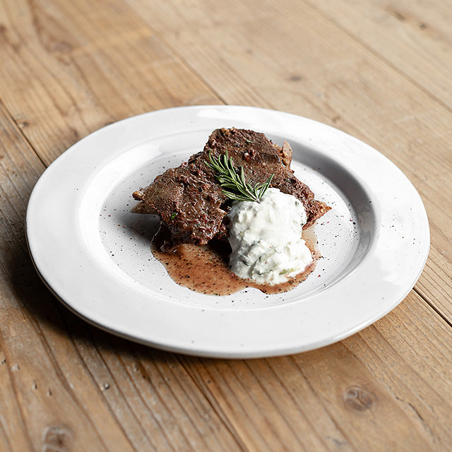 ぽってりと厚みのある、シンプルでアンティークなデザインがハイセンスな食器です。少しムラのある風味でかけられた白い釉薬と、そこからうっすら透ける濃いチャコールグレーの素地が、使い込まれたブロカントの食器のようなイメージに。素朴でナチュラルな風合いと、清潔で凛とした佇まいが、ポルトガルのブランドでありながら北欧の雰囲気もある、美しいデザインです。食卓を静かな路地裏のカフェやビストロのようなイメージに見せてくれそうですね。