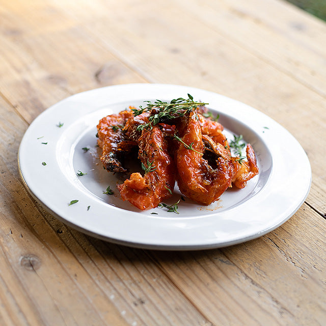PLANO (プラーノシリーズ)のお皿は、デザートプレート(22cm)、ディナープレート(29cm)の2種類があります。底は浅めなので、スープの多い料理には、同じシリーズのパスタボウルの方がおすすめです。ディナープレートはメインの料理に使いやすく、ワンプレートでいろいろ載せるのにも十分な大きさがあります。デザートプレートは、それに比べて二回りほど小さく、取り皿やデザート、ちょっとしたお惣菜を載せるのに合っています。