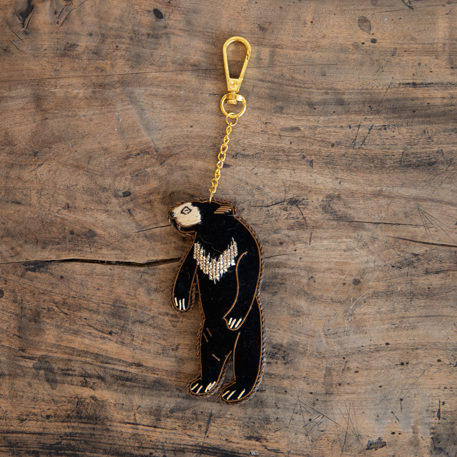 COTTAGE/コテージ ザリ刺繍 キーホルダー ツキノワグマ