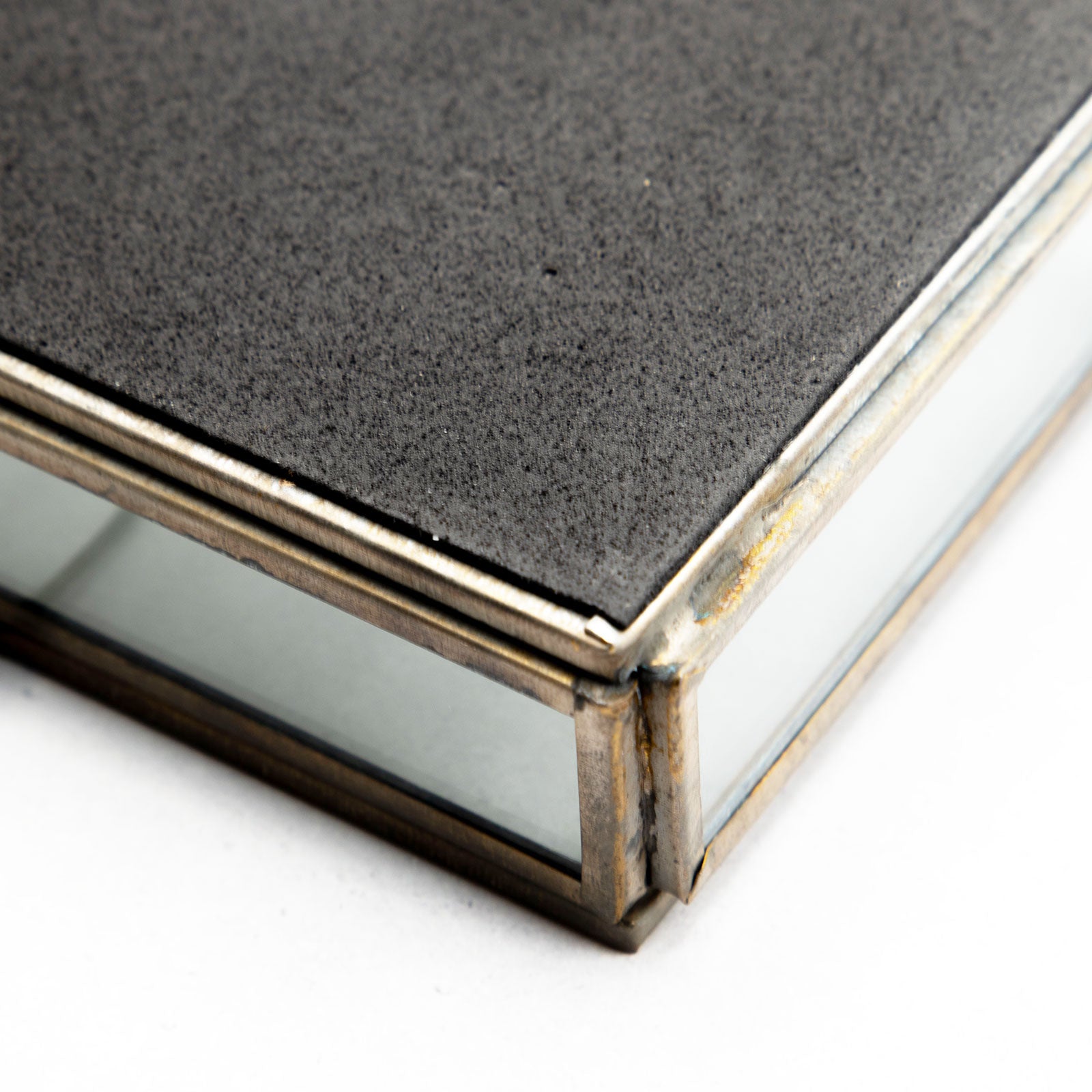 底が鏡面になっているのでジュエリーなどを入れるとキラキラとしてディスプレイ映えします。