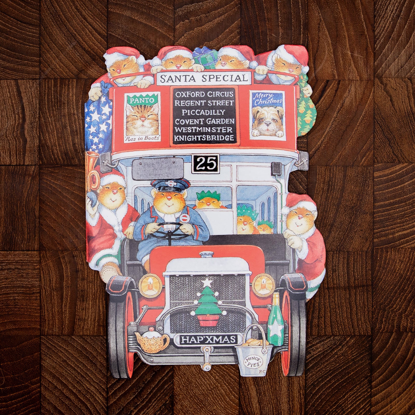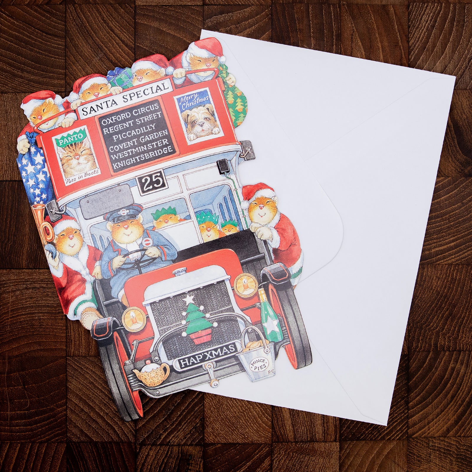 ダイカット クリスマスカード ピータークロス クリスマスのバス メッセージカード 封筒付き 白