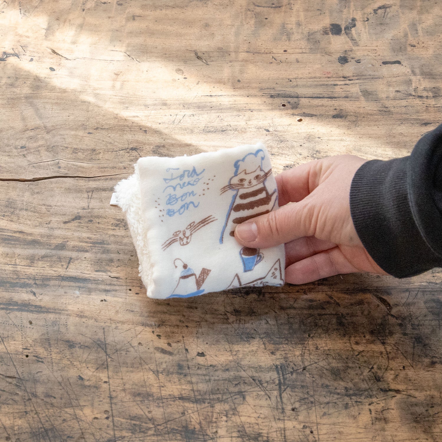 旅するレストラン・トラネコボンボンを主宰する料理人、中西なちおさんデザインのパイルガーゼハンカチです。