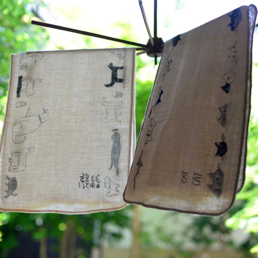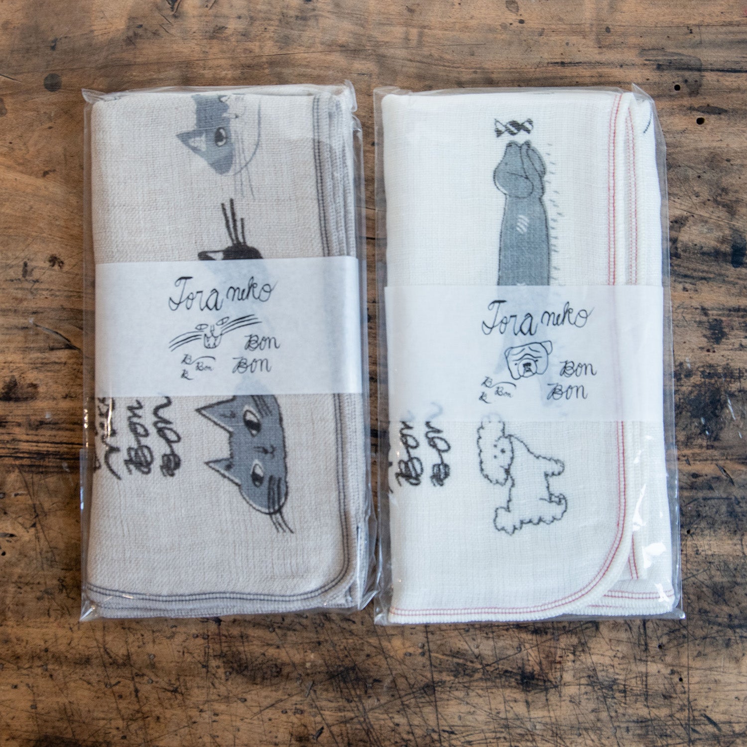 トラネコボンボン リネンガーゼ 手ぬぐい ネコ/イヌ
