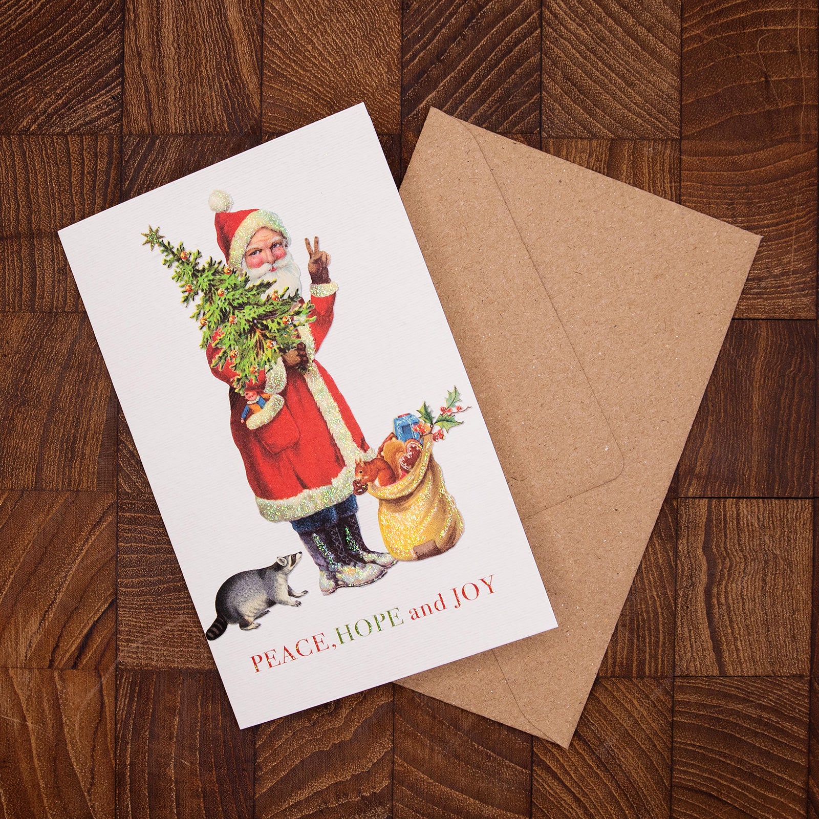 ドイツ製 クリスマス キラキラグリッター グリーティングカード サンタクロース