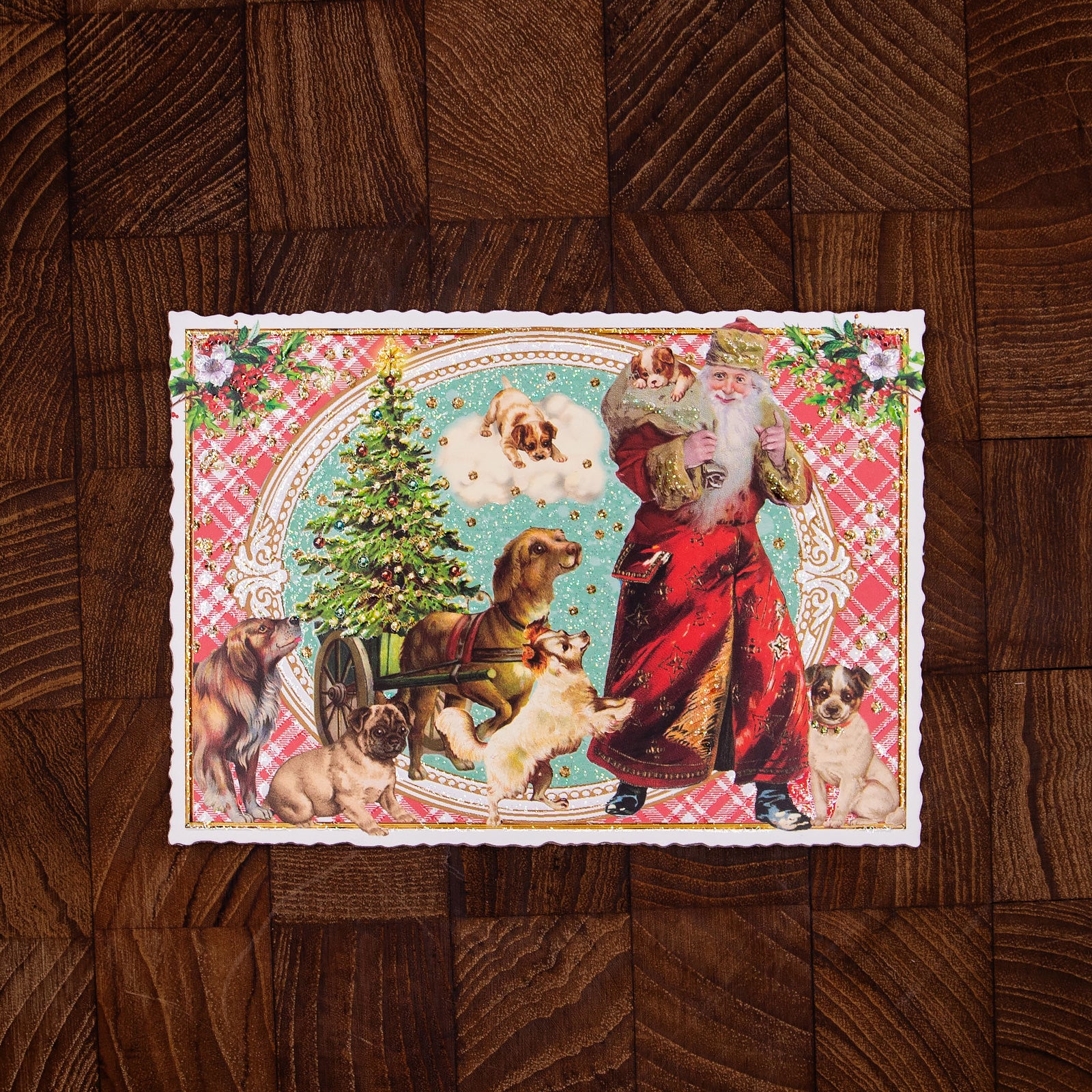 ドイツ製 クリスマス ポストカード ラメ&ダイカット加工 サンタとイヌ