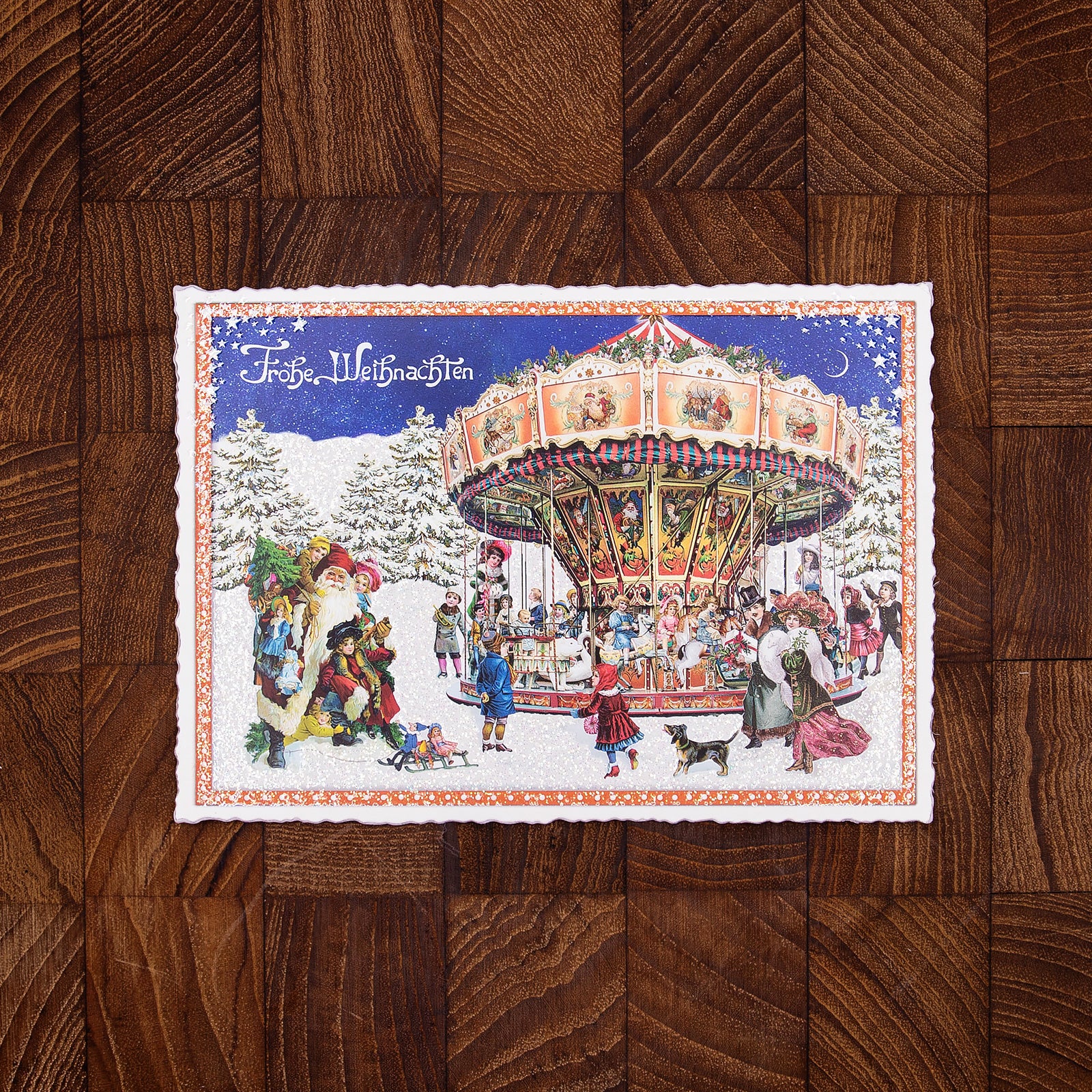 ドイツ製 クリスマス ポストカード ラメ&ダイカット加工 サンタとメリーゴーランド