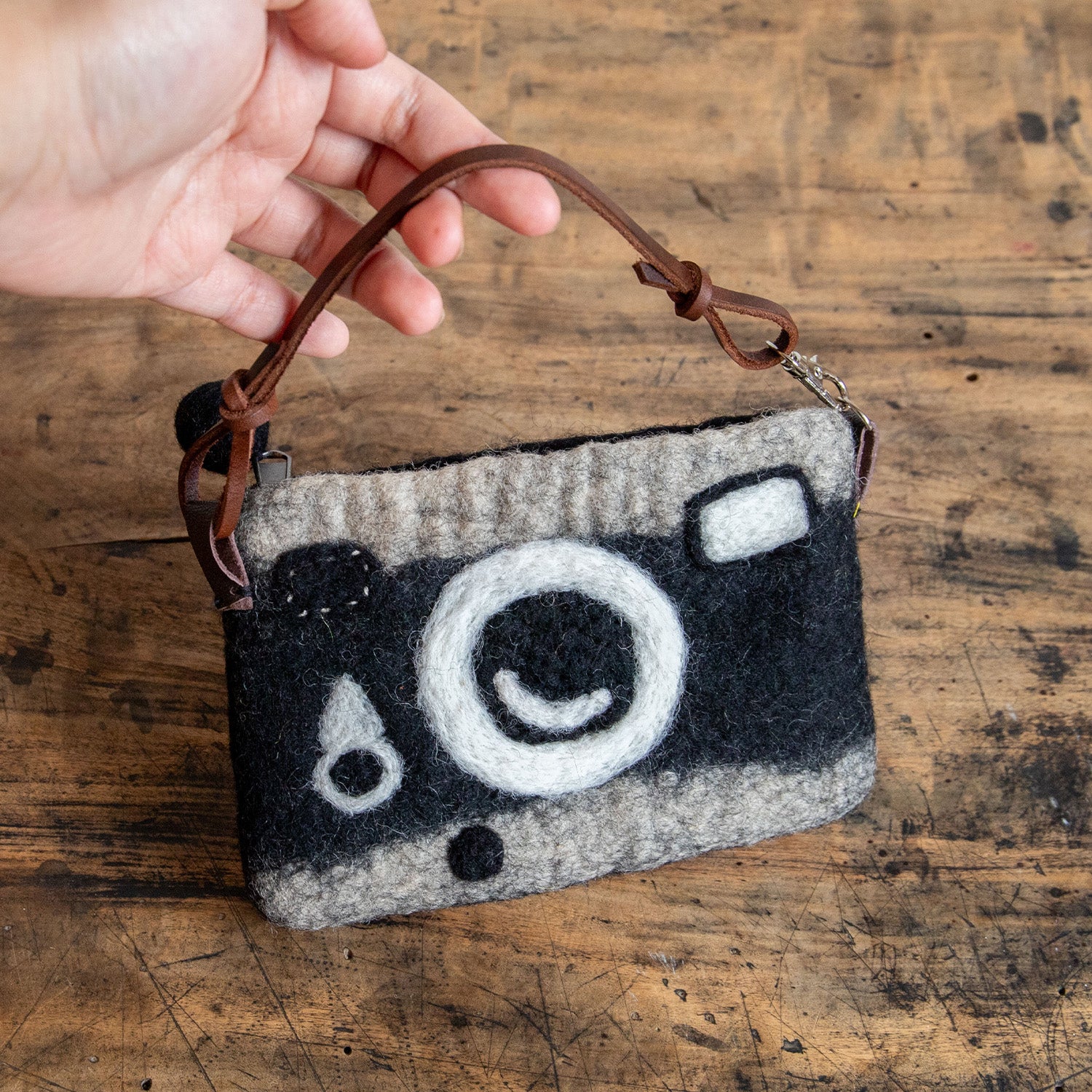 フェアトレード 羊毛フェルト カメラ ポーチ