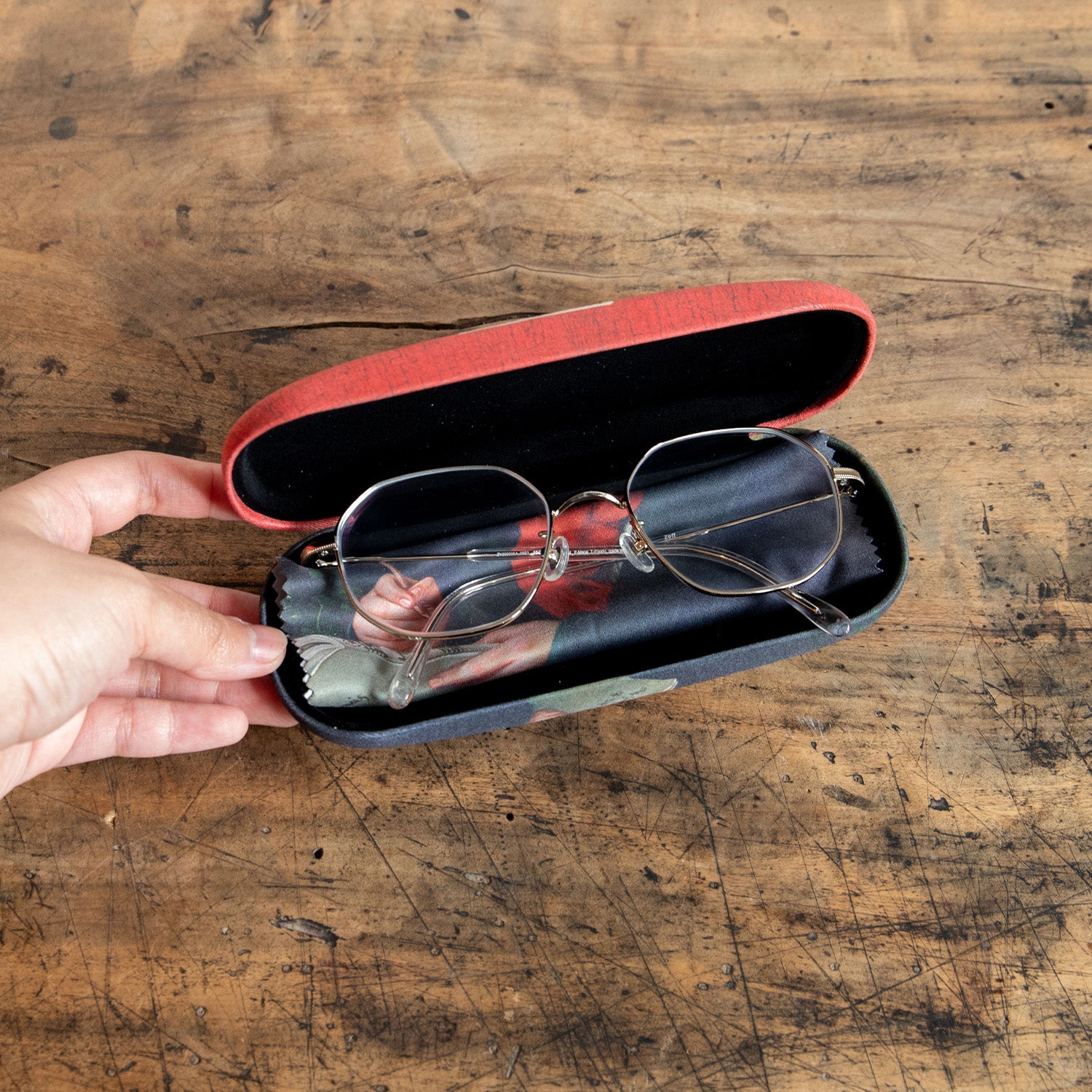 ◆ ケースの中には、ベートーベン肖像画がプリントされた厚みのあるメガネクロスが入っています