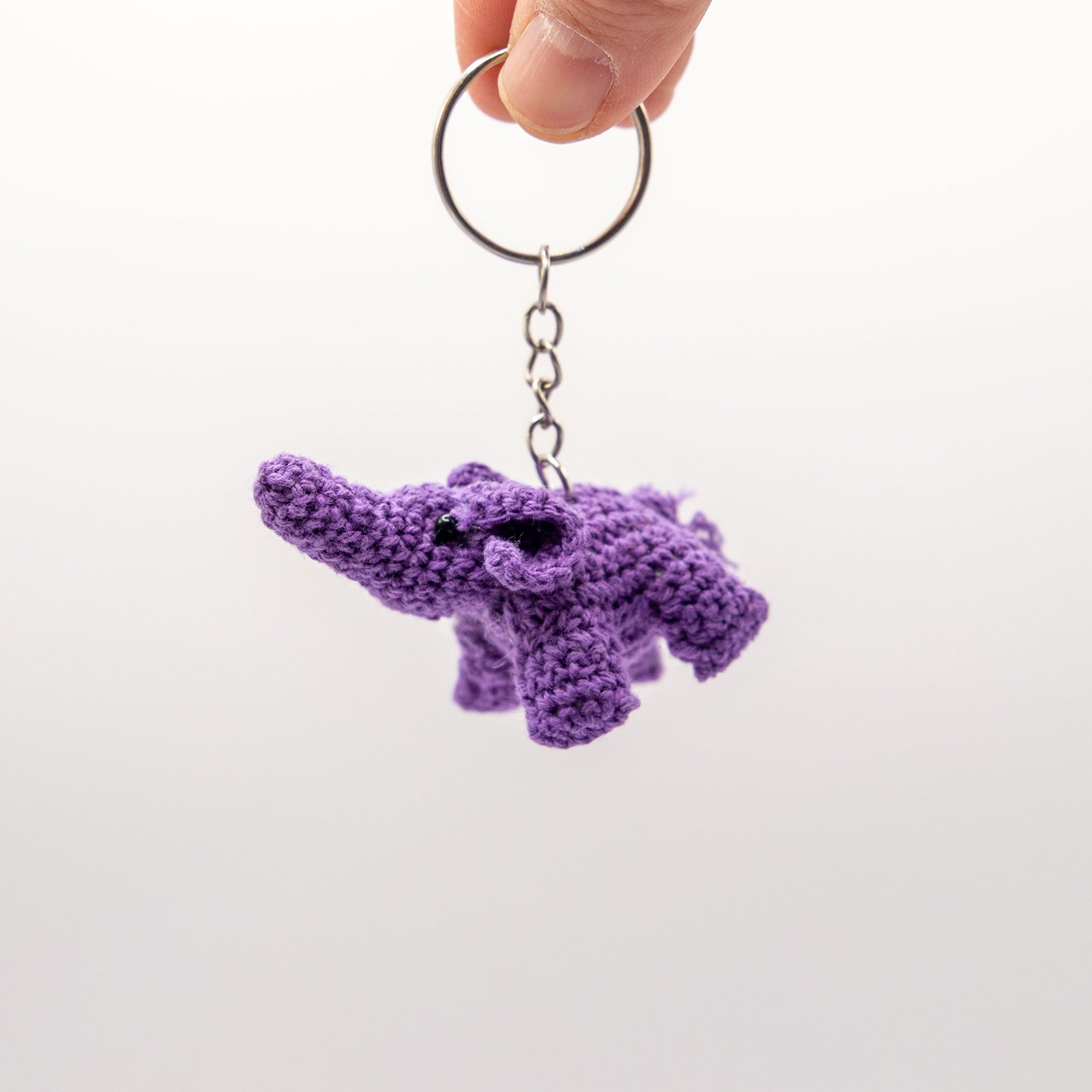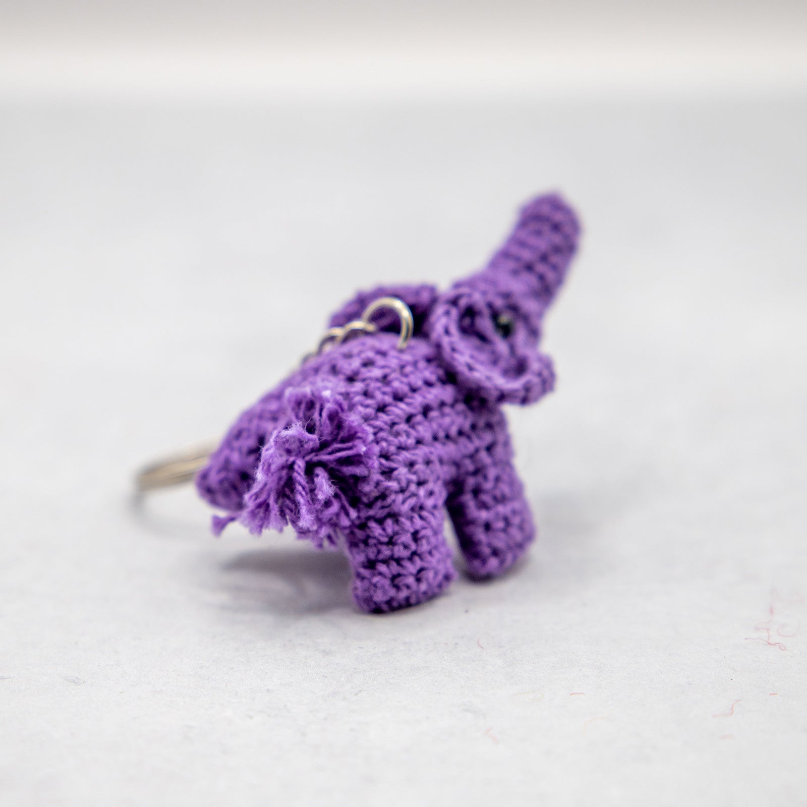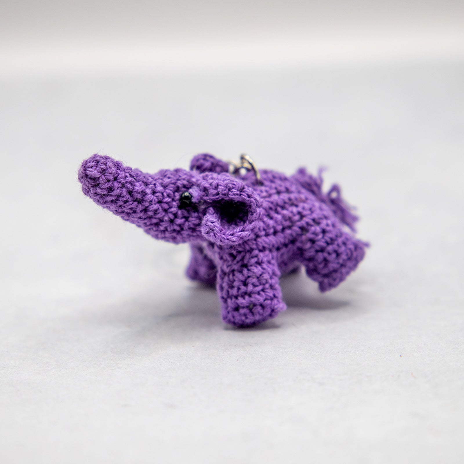コットン素材の編みぐるみぞうのキーホルダー。