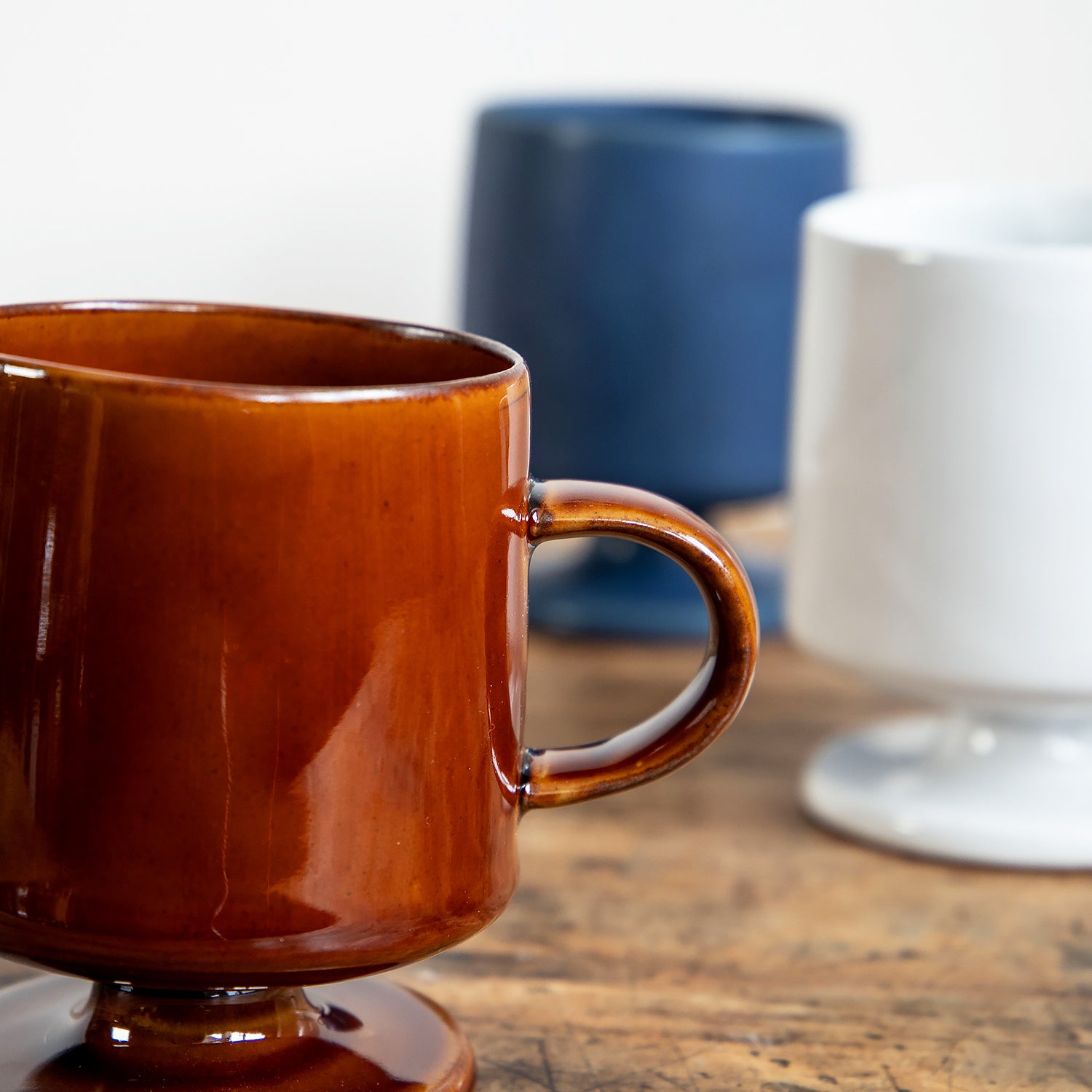 MIA MUGは、本体・脚・取手のすべてを職人の手で一つひとつ組み立てて作られる、脚付きのマグカップです。均一に揃いすぎない、どこかゆらぎのあるフォルムが、手仕事ならではの味わいを引き出しています。