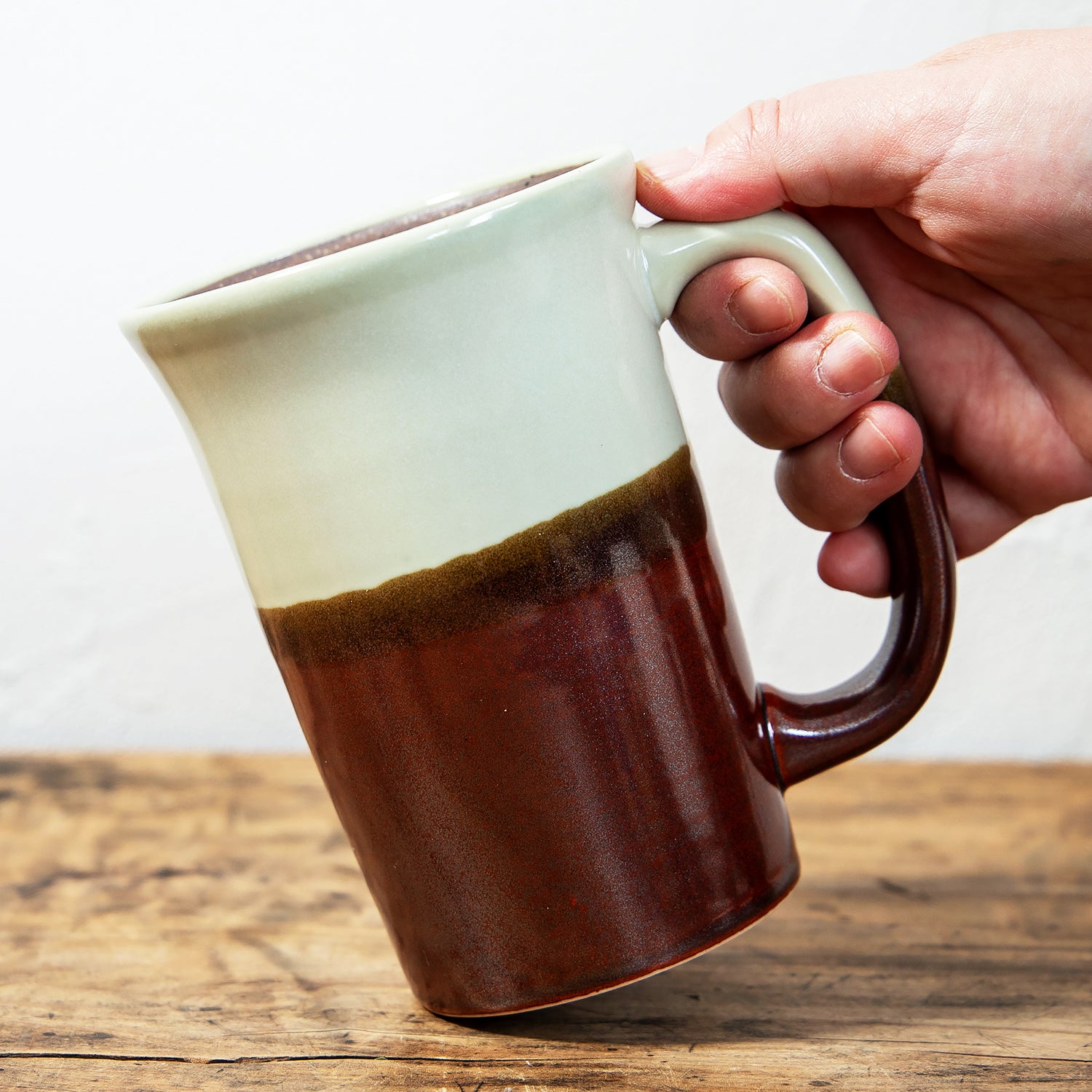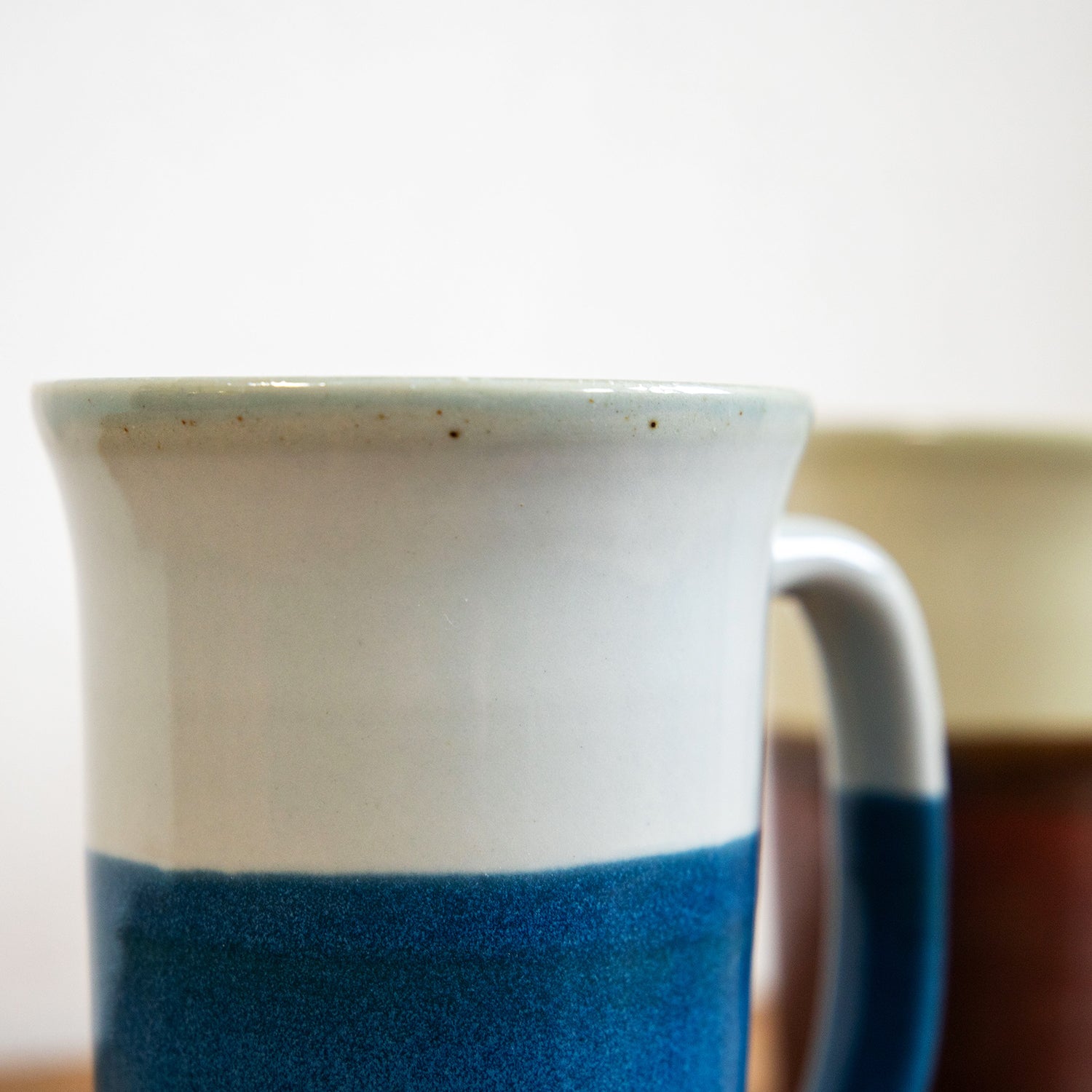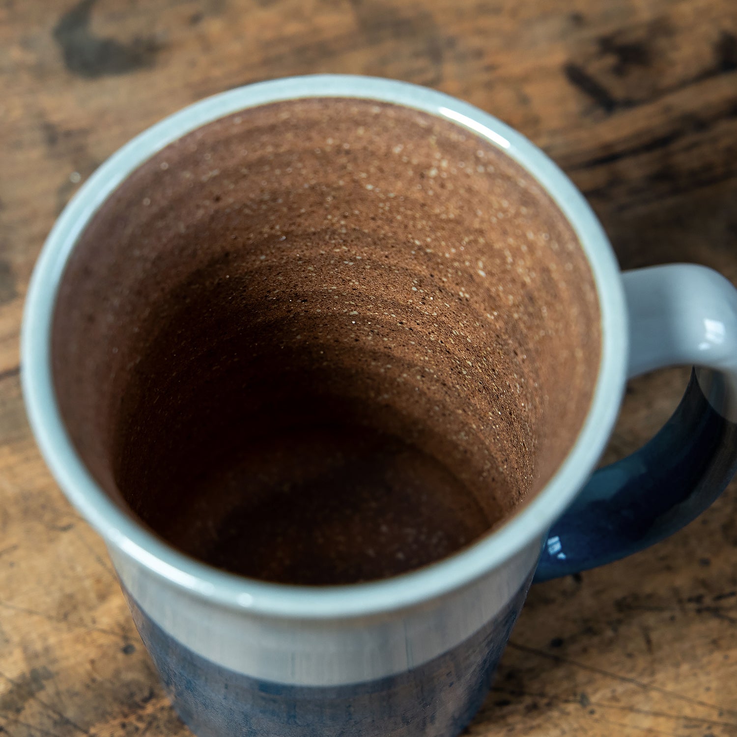 自然からインスピレーションを受けた色を、2層の釉薬で大胆に切り替えたバイカラーデザインのビアマグです。