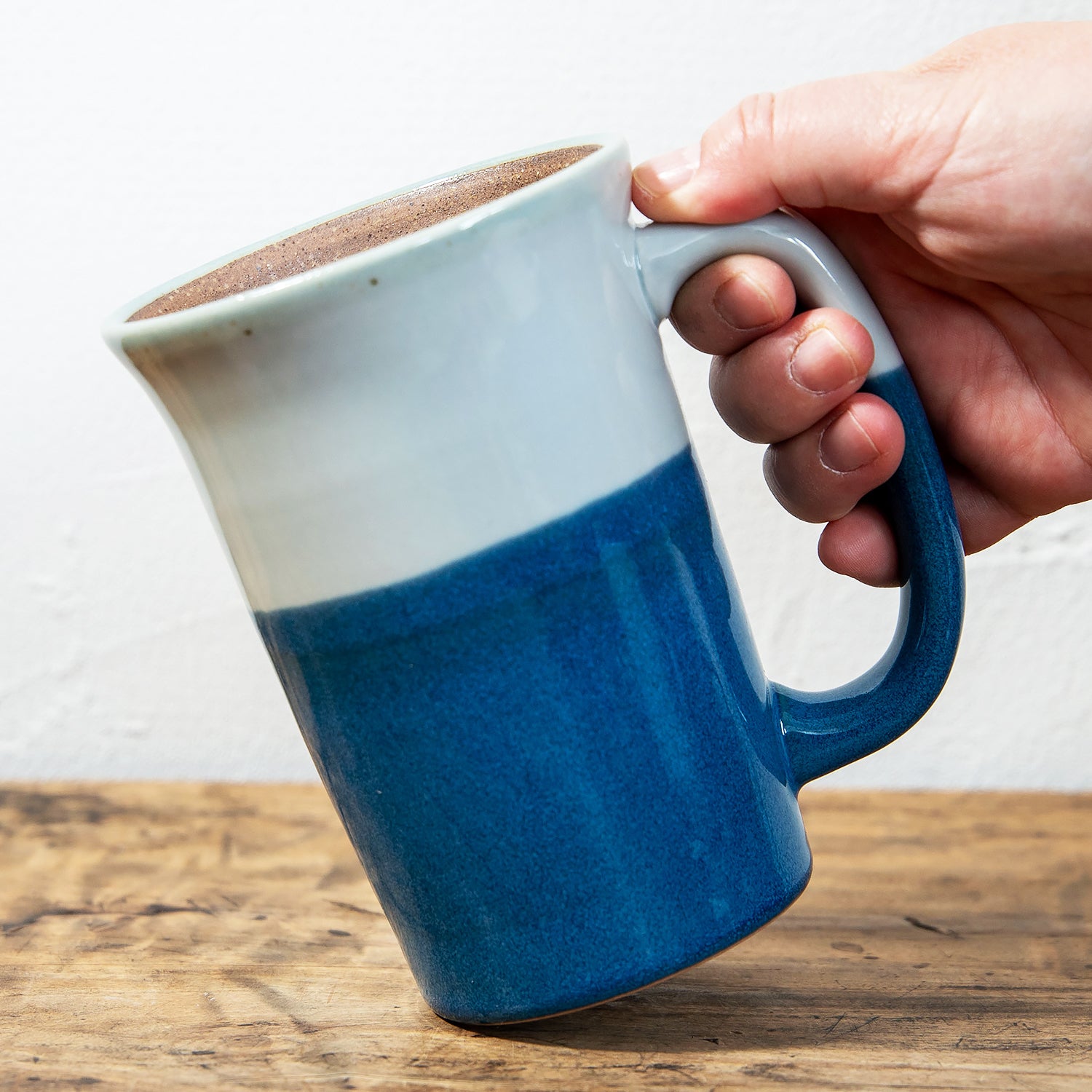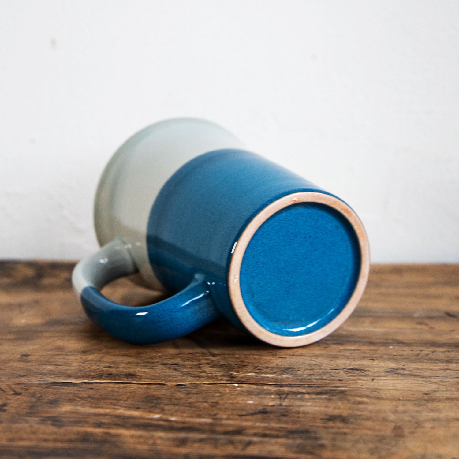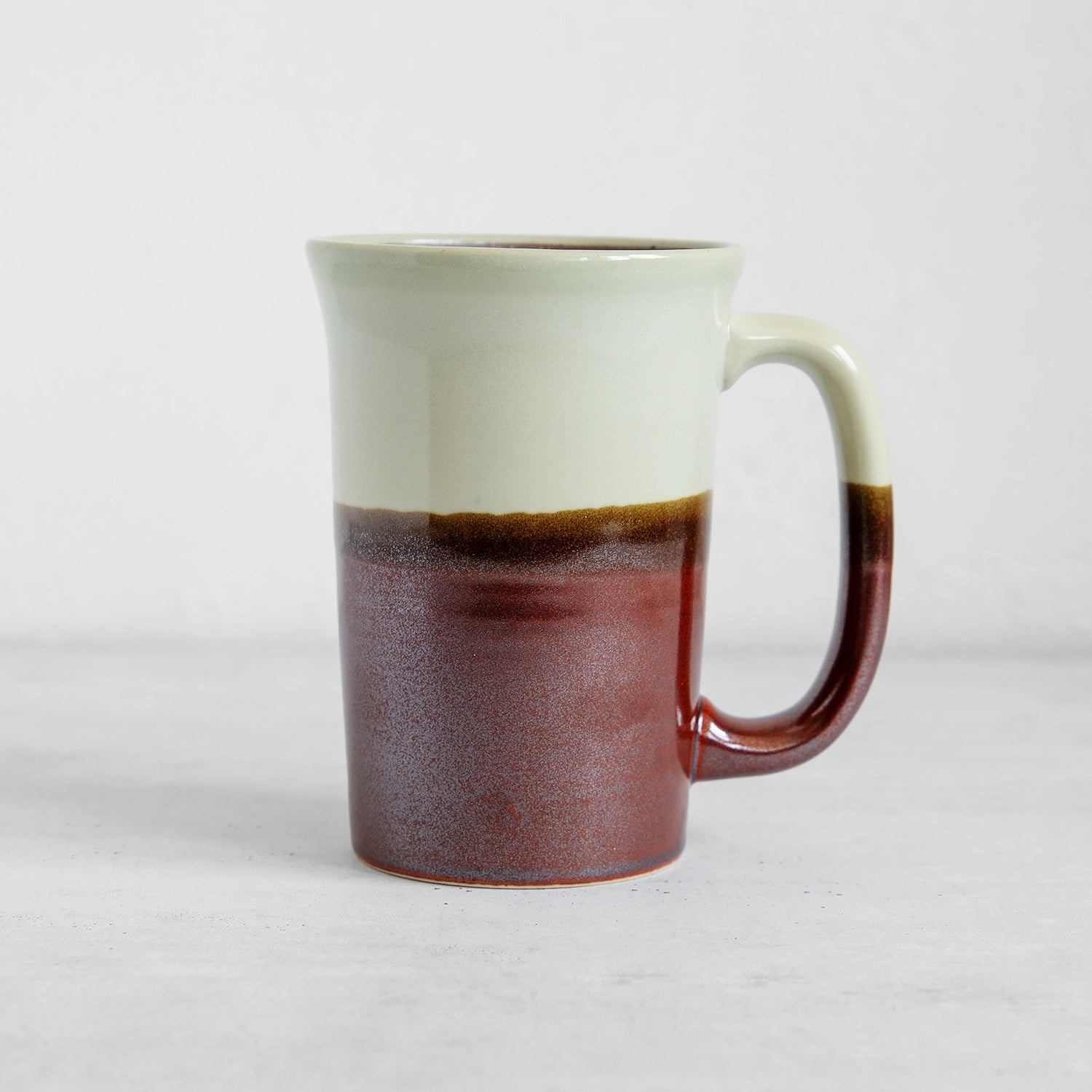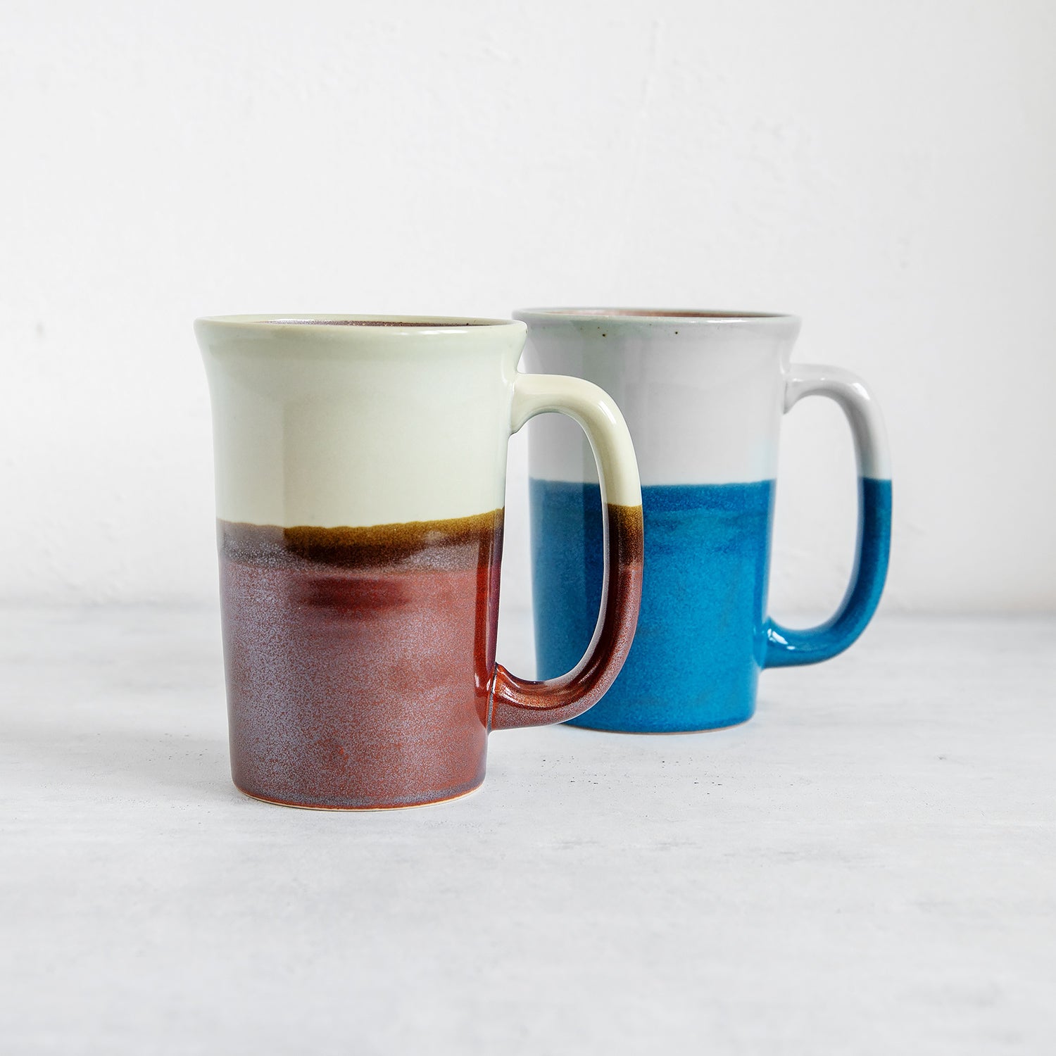 自然からインスピレーションを受けた色を、2層の釉薬で大胆に切り替えたバイカラーデザインのビアマグです。