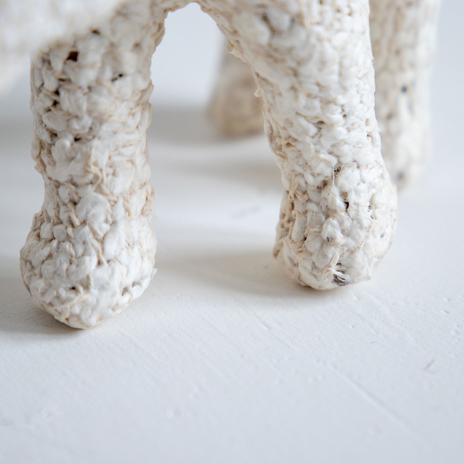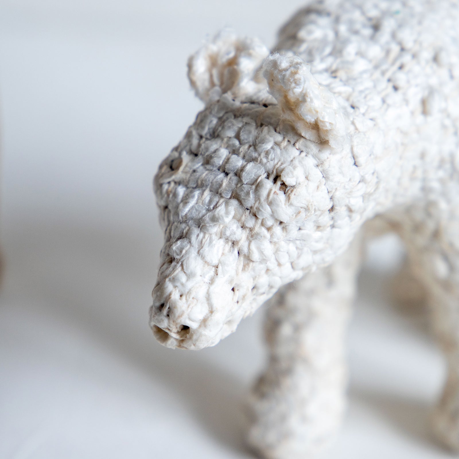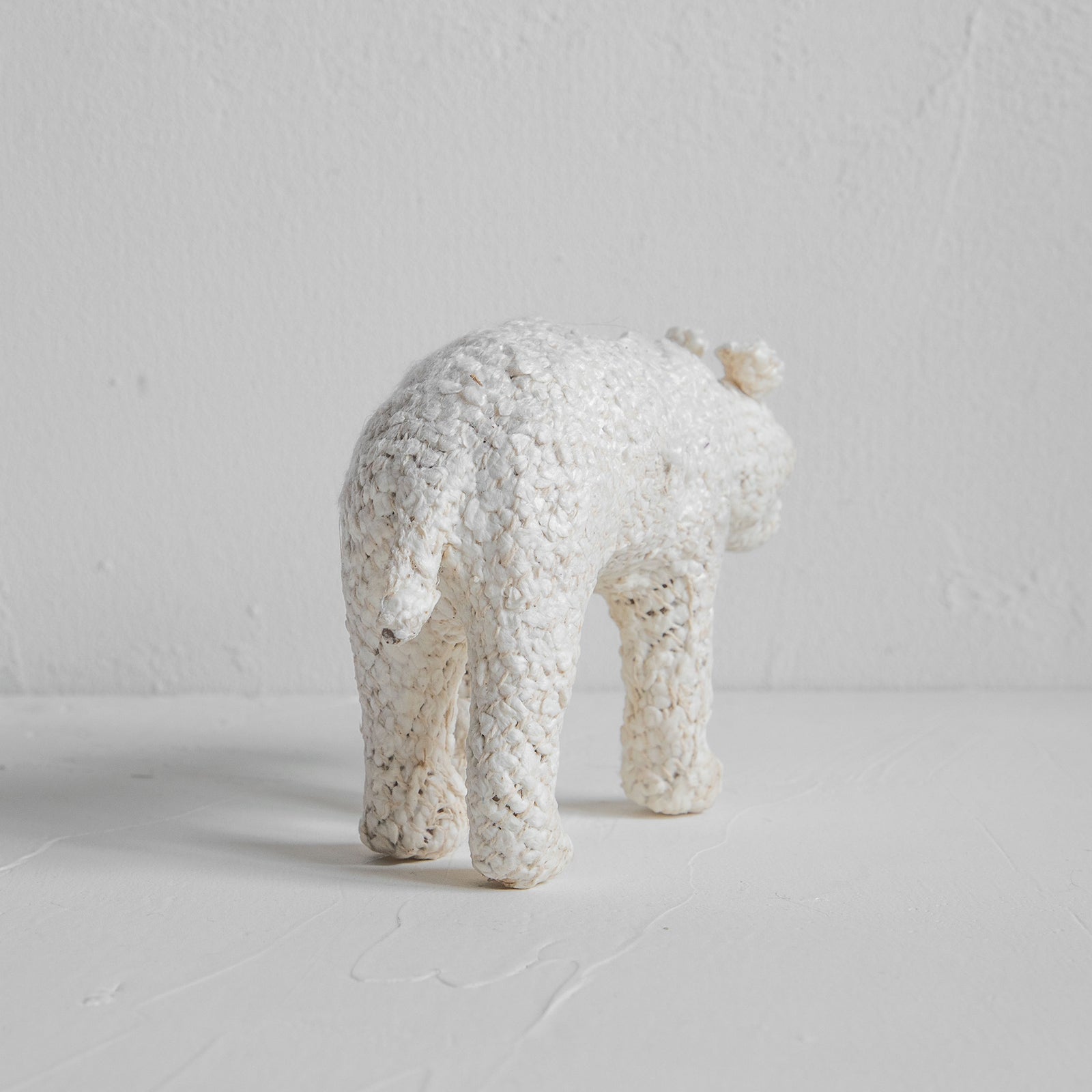 クマをモチーフにした、モコモコとしたホワイトカラーのブークレ生地を使用したオブジェです。