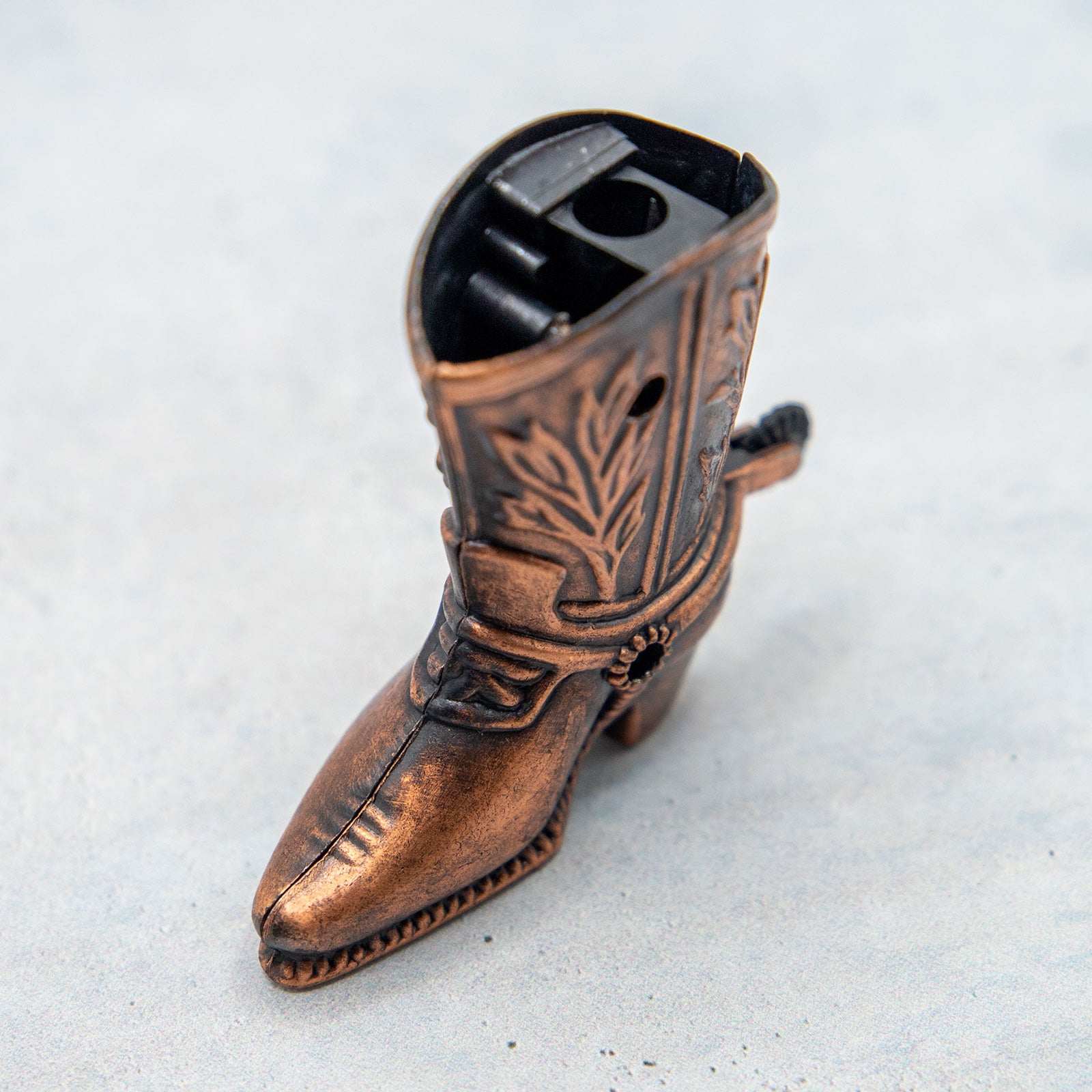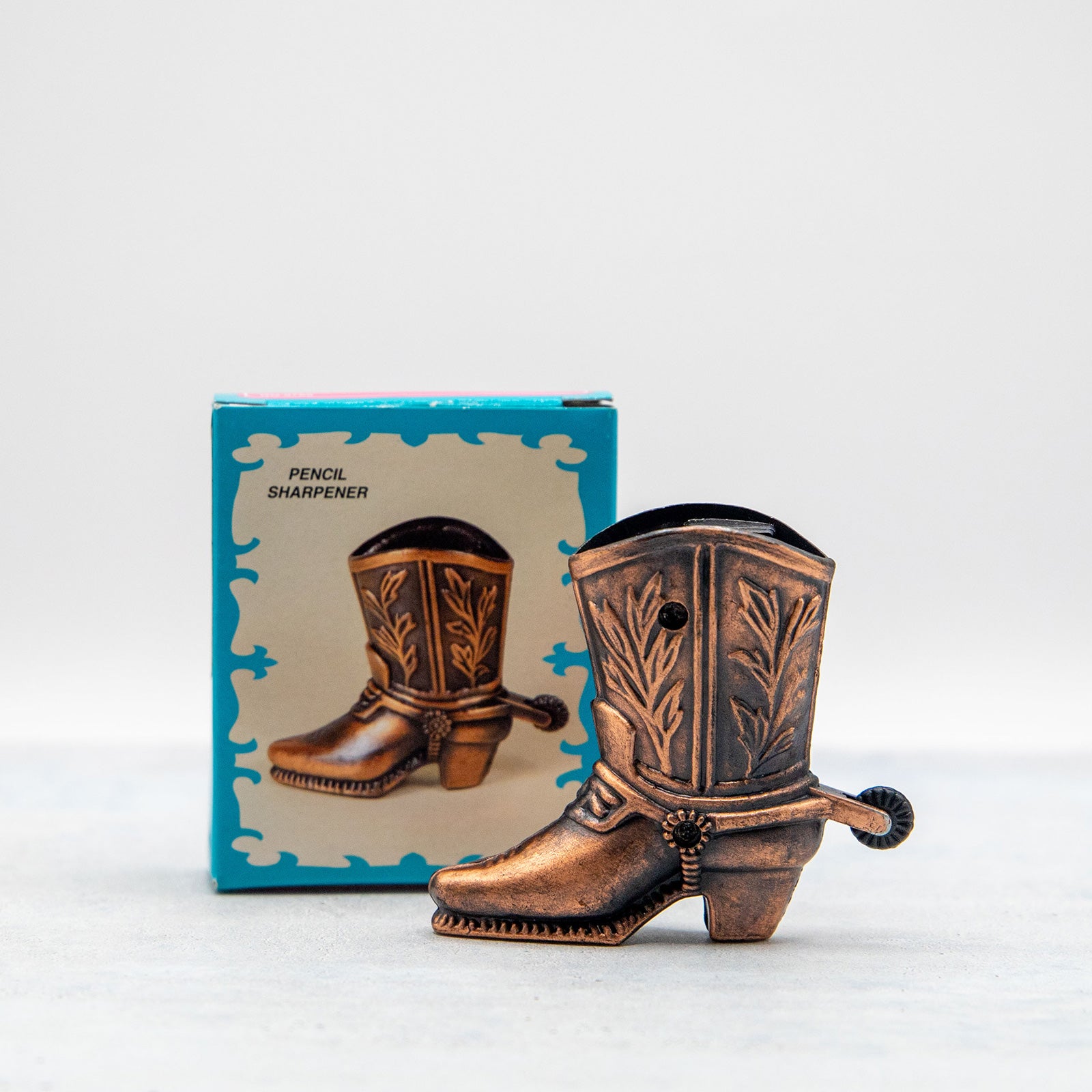 美しい模様のウェスタンブーツ。なぜブーツを鉛筆削りに、なんて疑問は愚問です。
