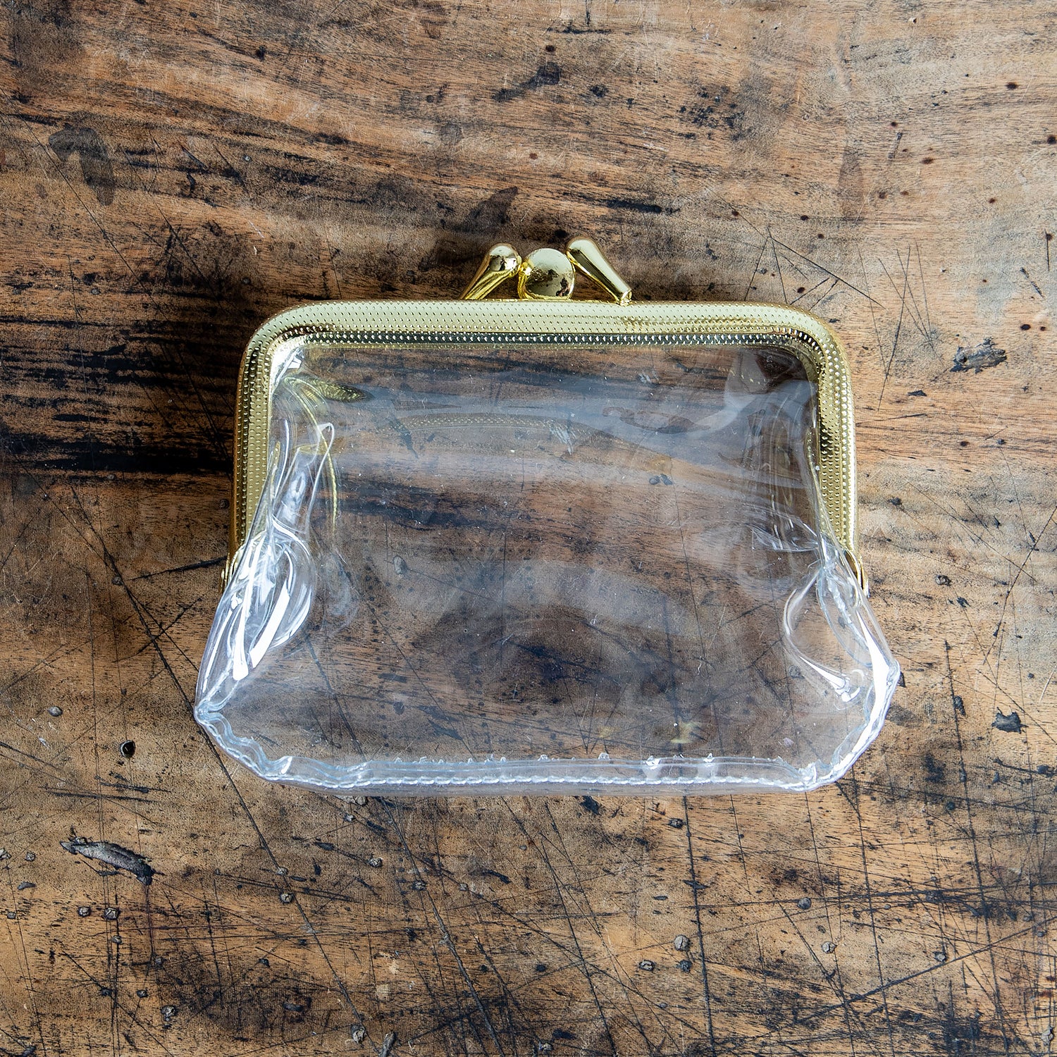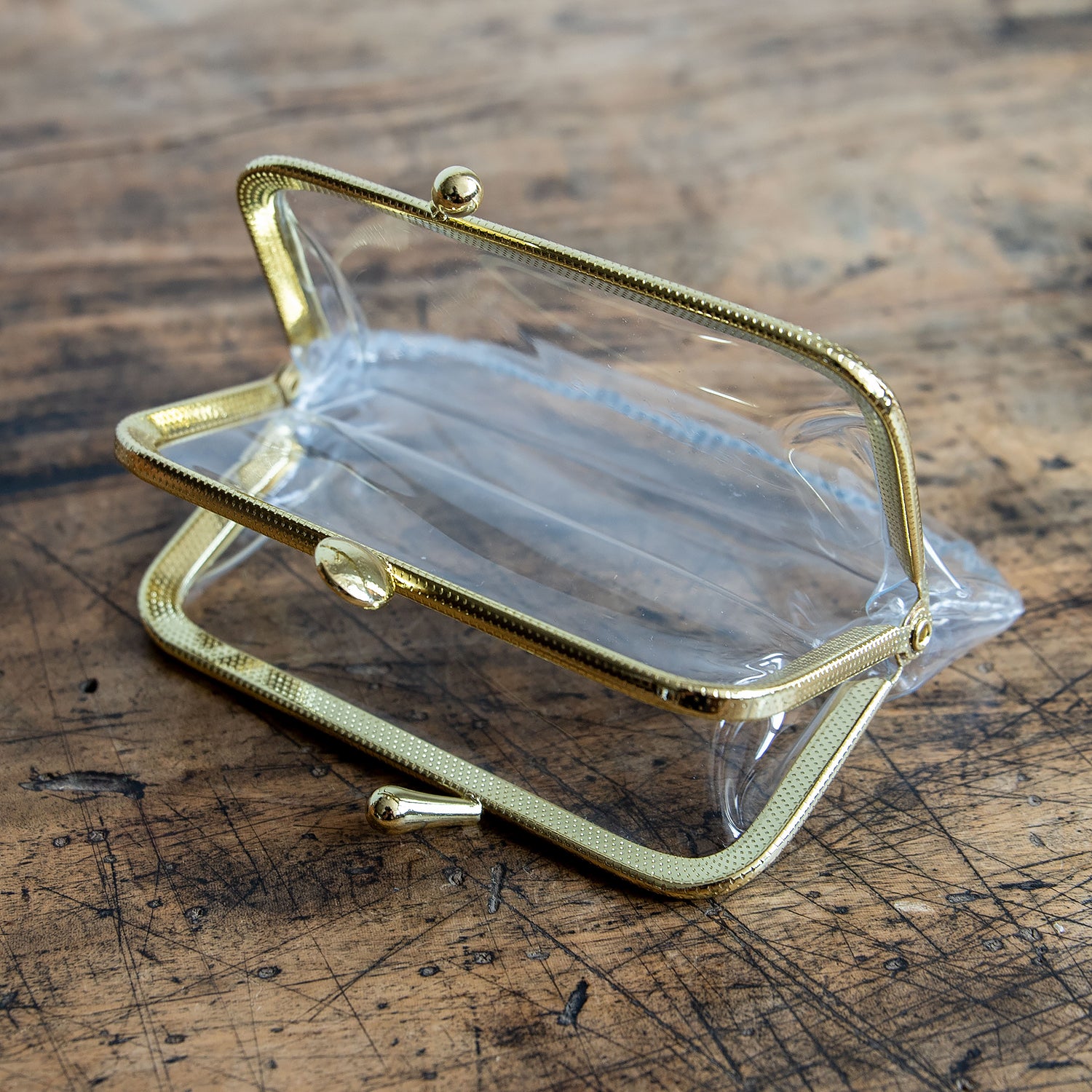 ゴールドの口金とツヤっとしたビニールの組み合わせも、