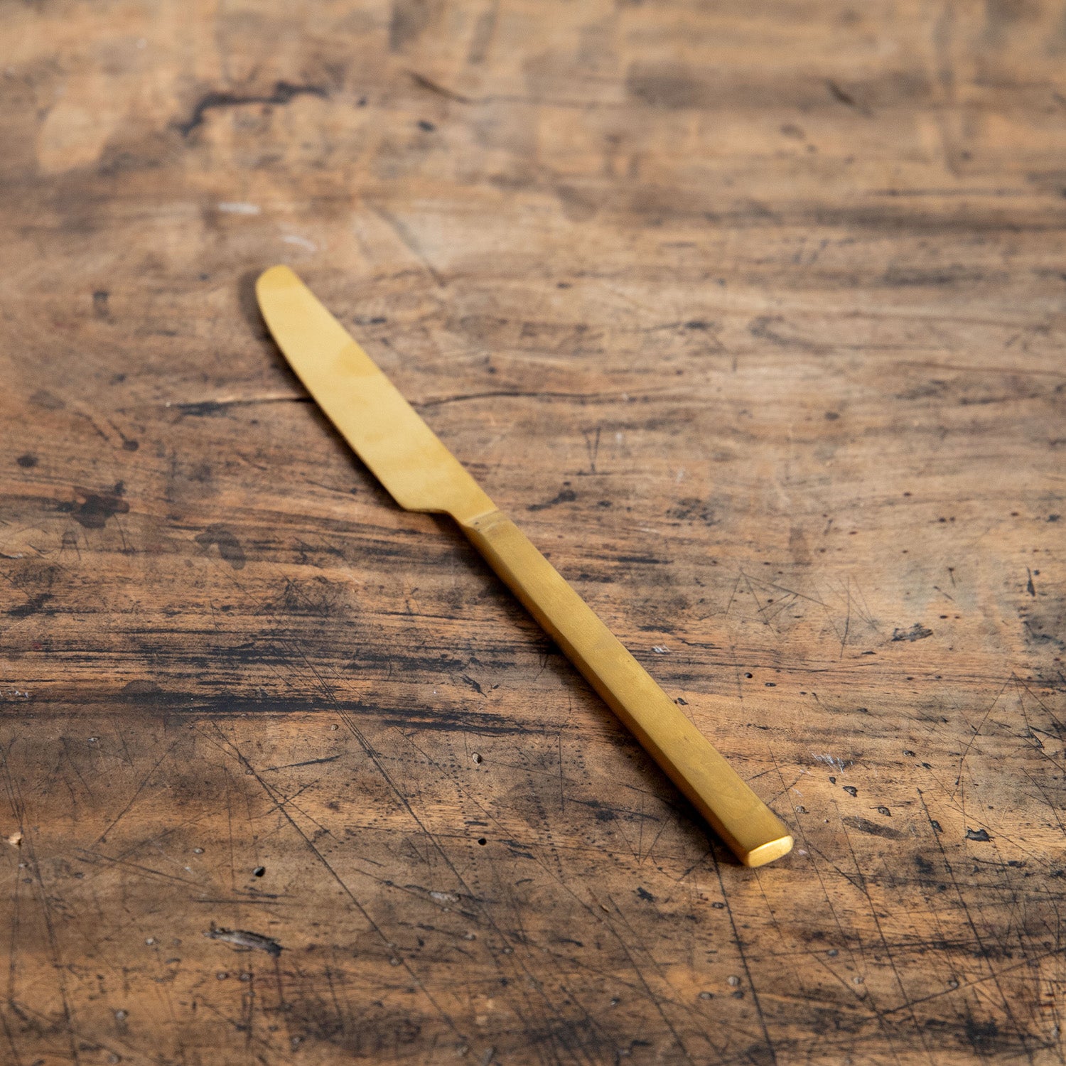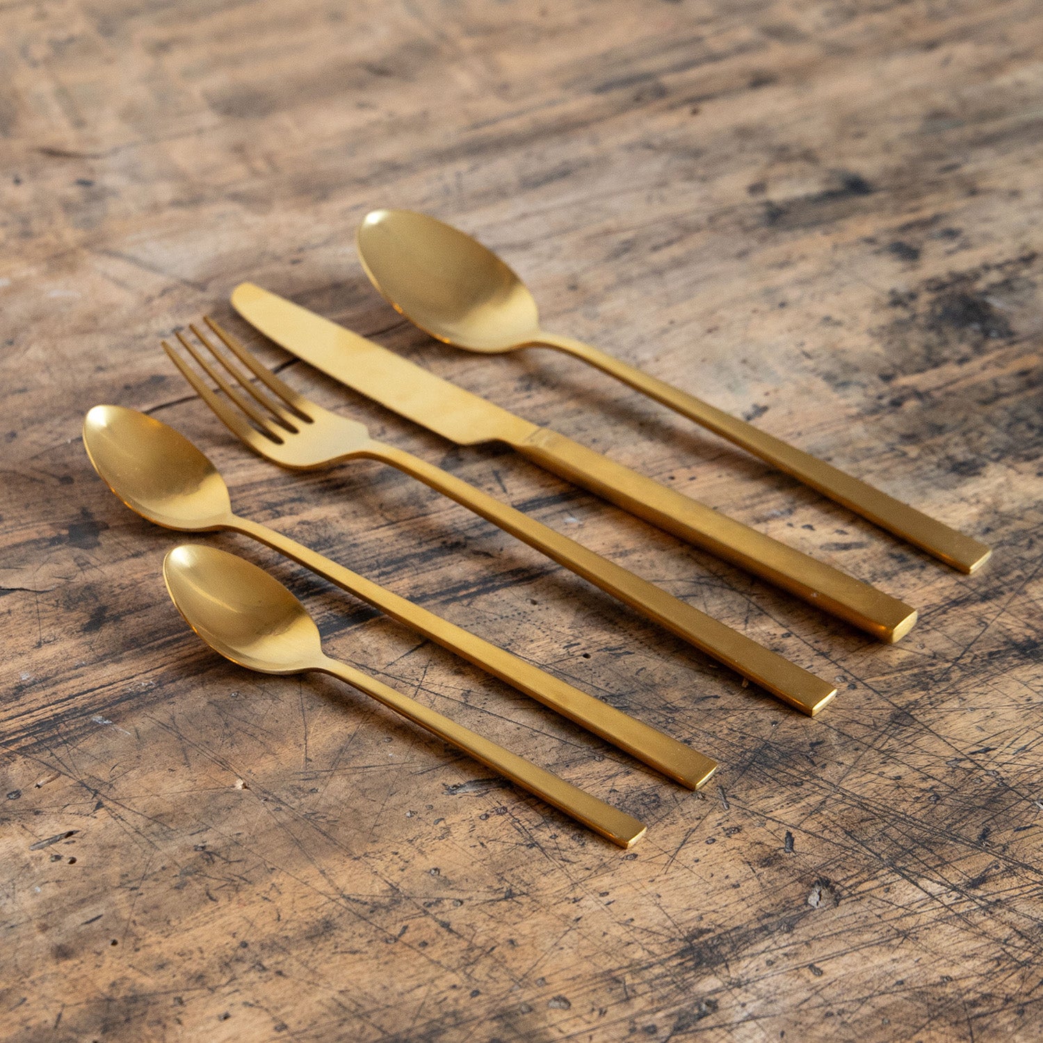 こちらのBitzのカトラリーセットは、金管楽器のような少しクラシックな輝きのブラスのカトラリーを2セットご用意。同ブランドのストーンウェアに合わせて作られています。個性的なカトラリーにもかかわらず、シンプルなデザインなので、Bitz商品はもちろん、他の食器にも意外と合わせやすいのが使いやすいです。ブラスは明るく輝くゴールドというよりは、金管楽器のようなシブい質感です。ありそうで見かけない、そんなオリジナリティあふれるカトラリーたちです。