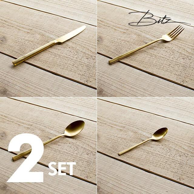 Bitz/ビッツ カトラリー4点(ナイフ/フォーク/スプーン/ティースプーン)×2セット ゴールド(ブラス)
