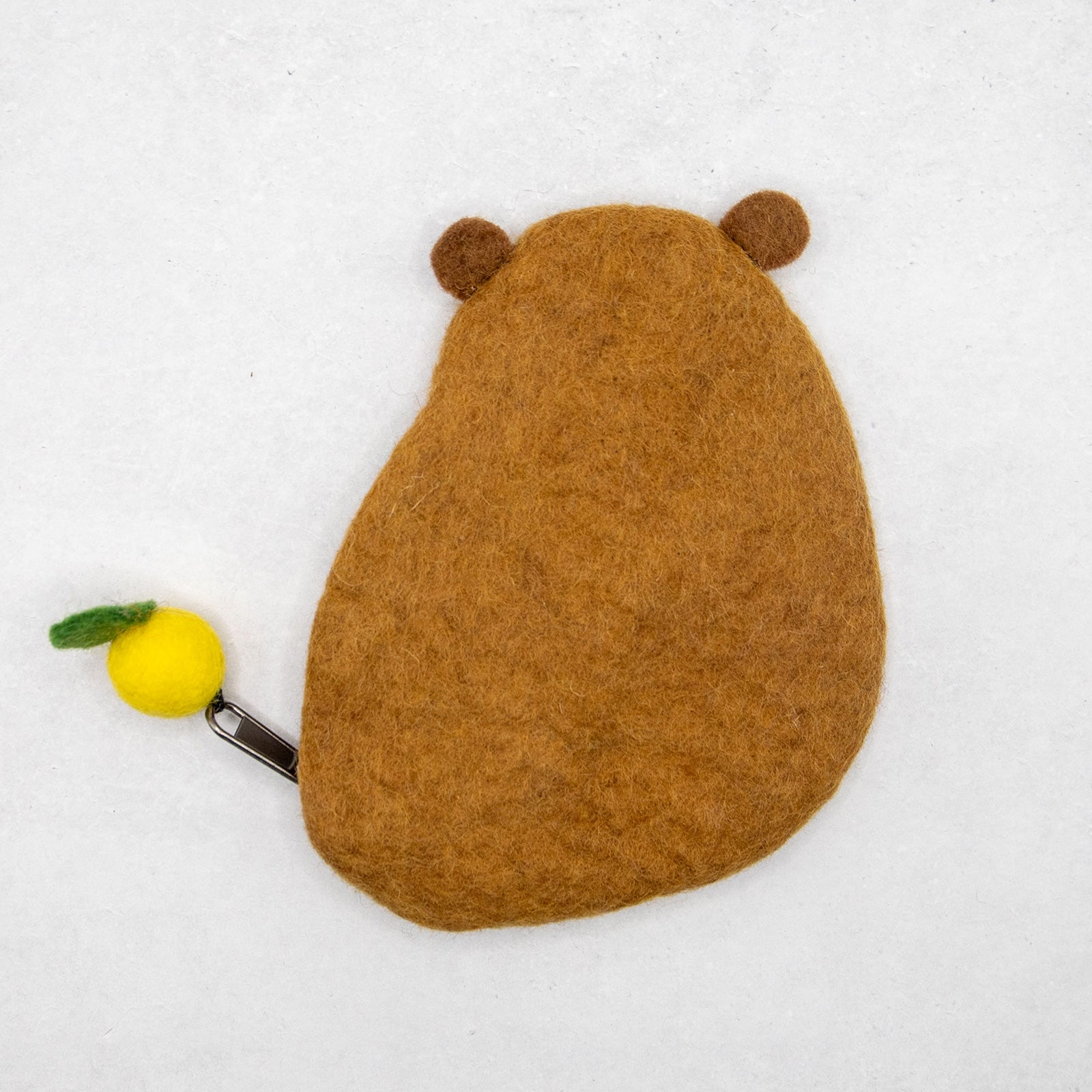 羊毛フェルトで製作されたハンドメイドのカピバラポーチです。