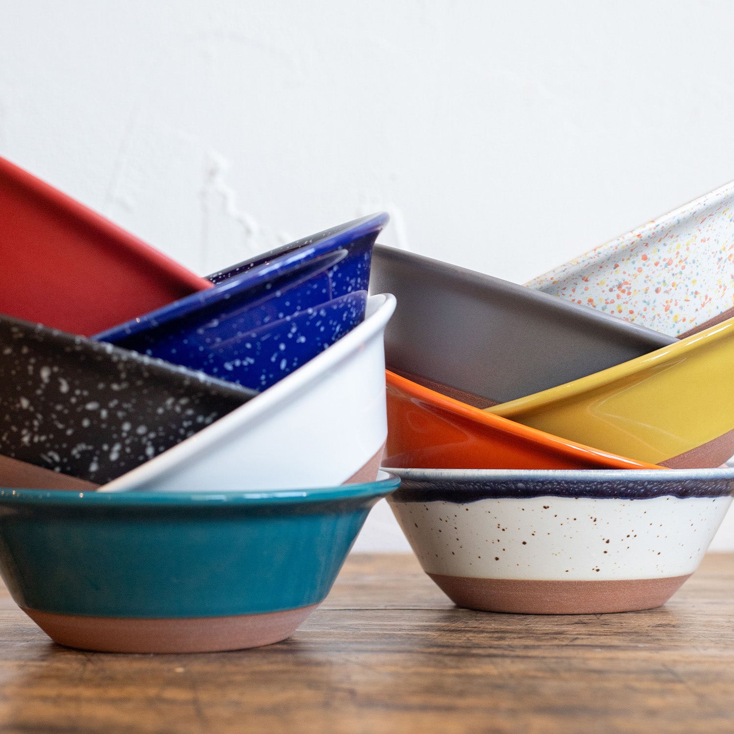 使いやすさ、持ちやすさを追求し、飽きが来ないシルエットを型からこだわって作りました。 シリアル、サラダ、スープボウルとして一番使われているサイズのボウルをチップスシリーズの形に落とし込みました。