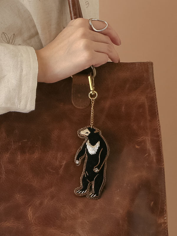 COTTAGE/コテージ ザリ刺繍 キーホルダー ツキノワグマ