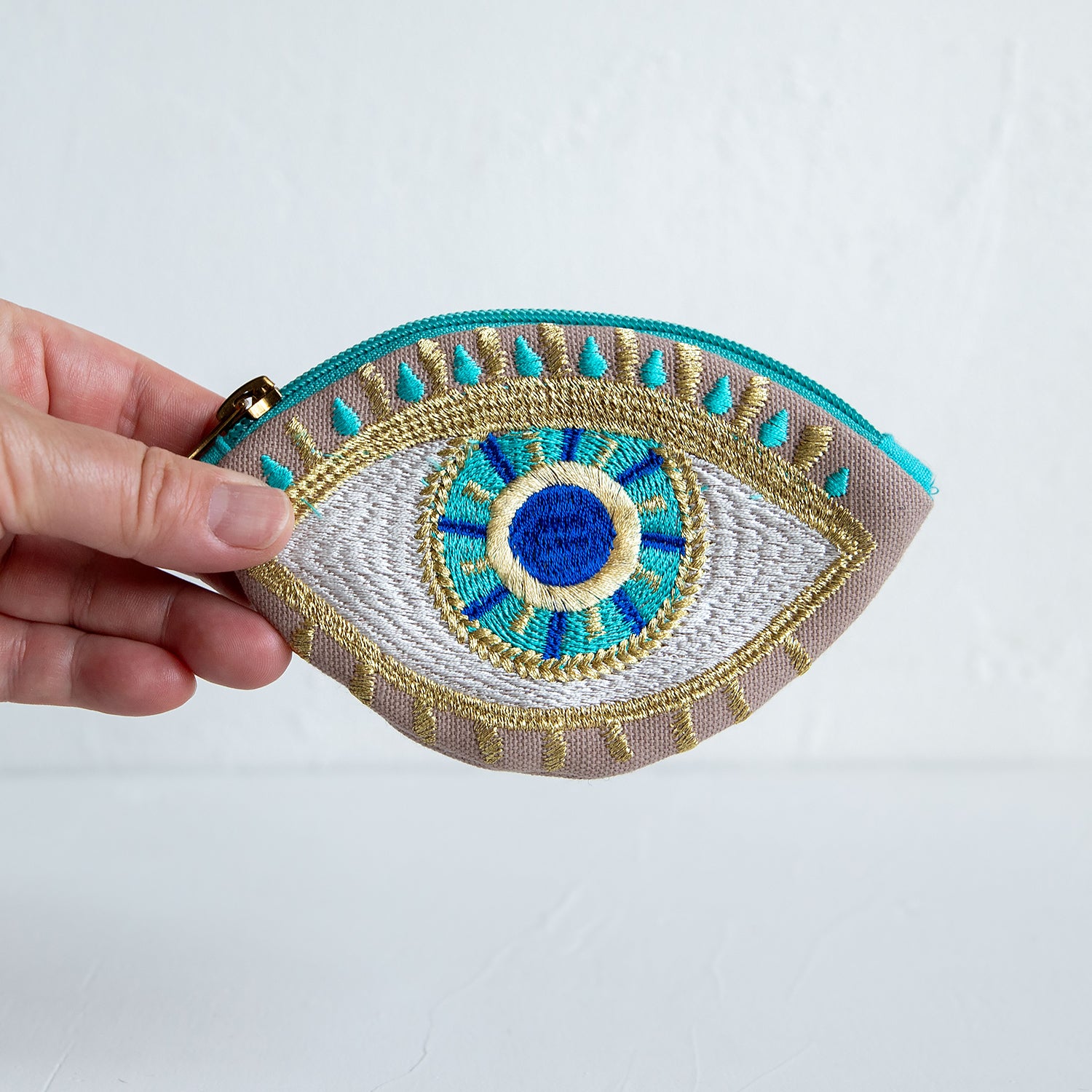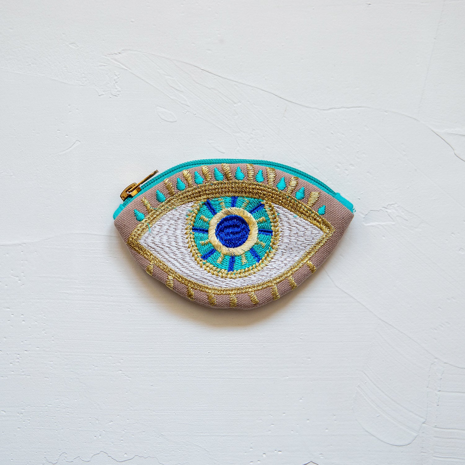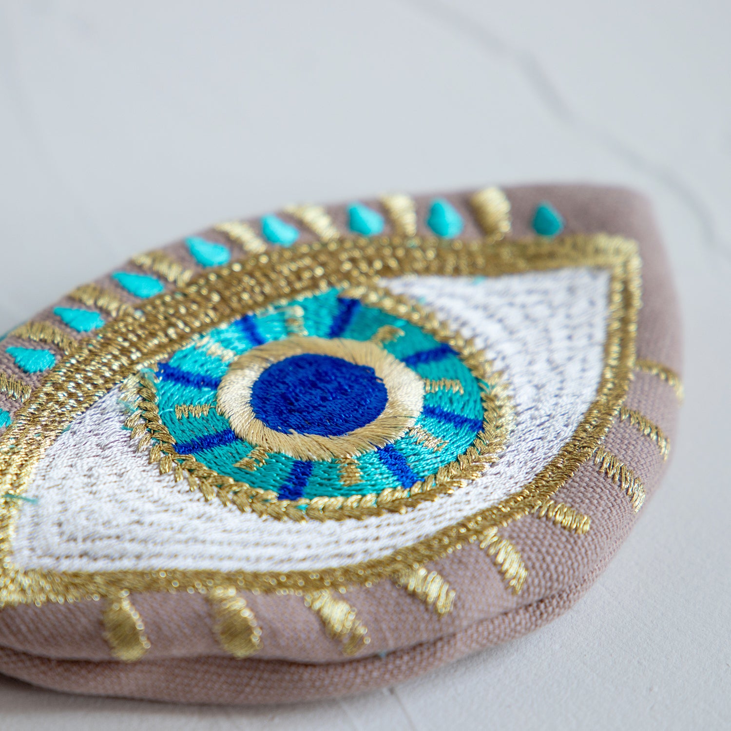 イーブルアイの刺繍が施された存在感あるポーチです。