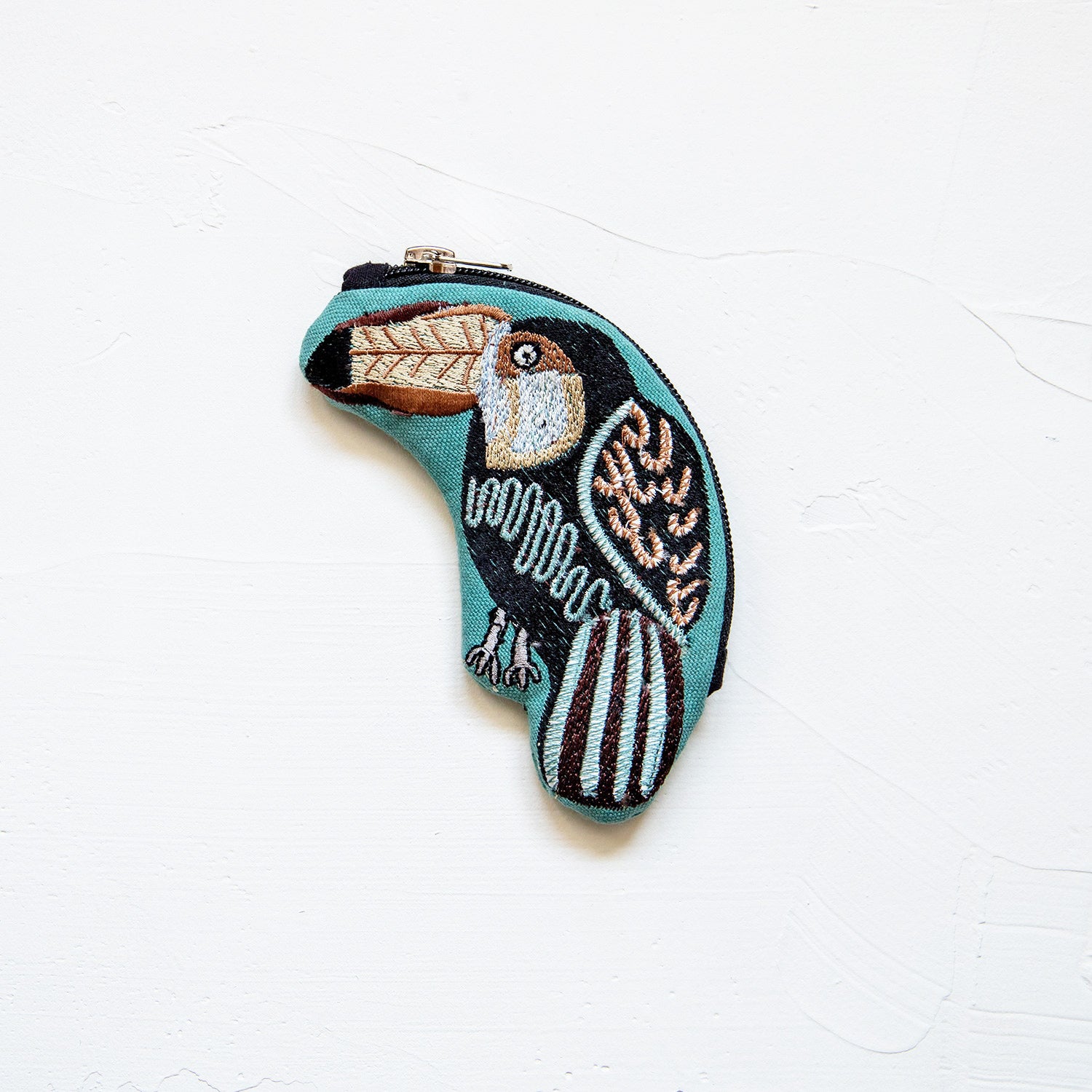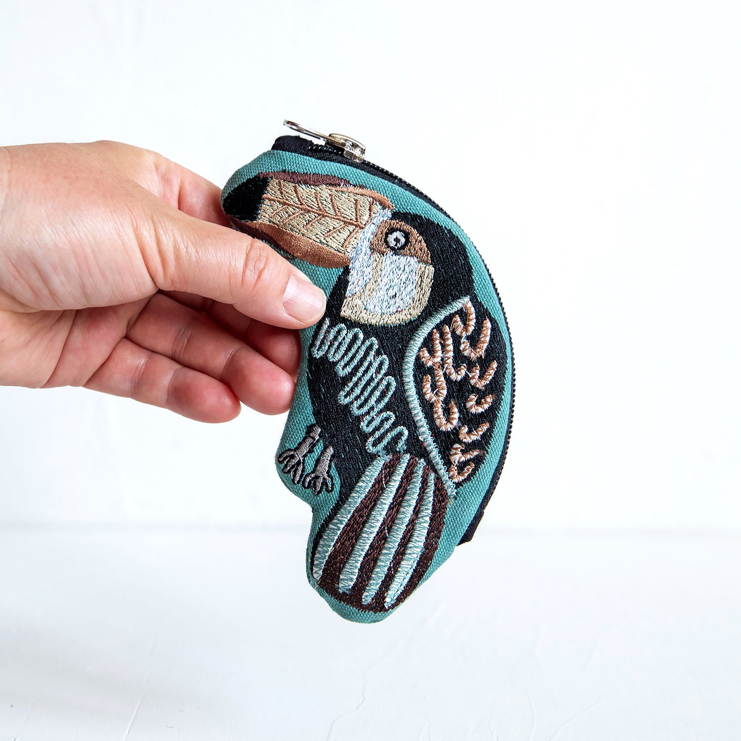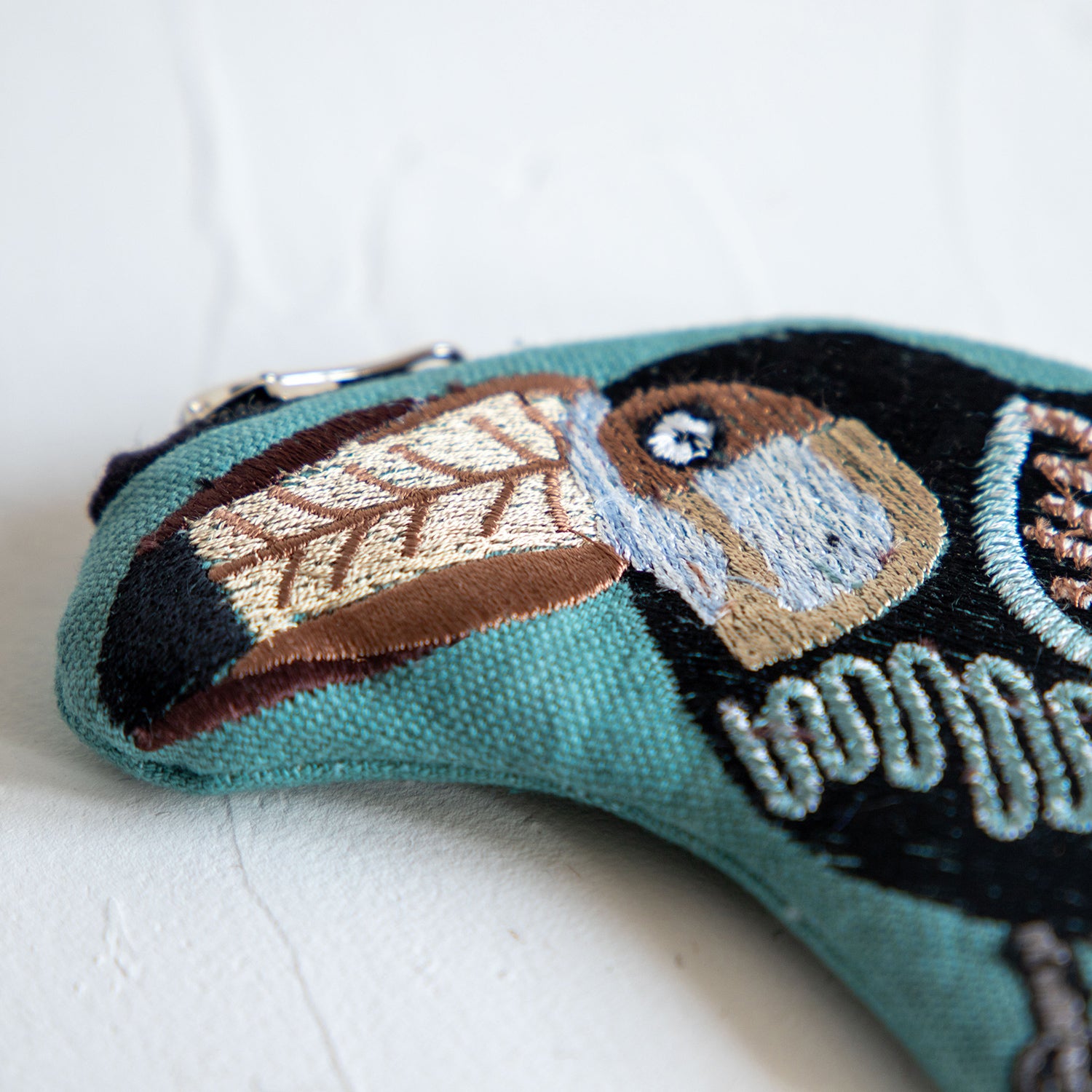 繊細な描写が魅力的なインド製ポーチシリーズ。人気のバッグのオオニシハシモチーフです。