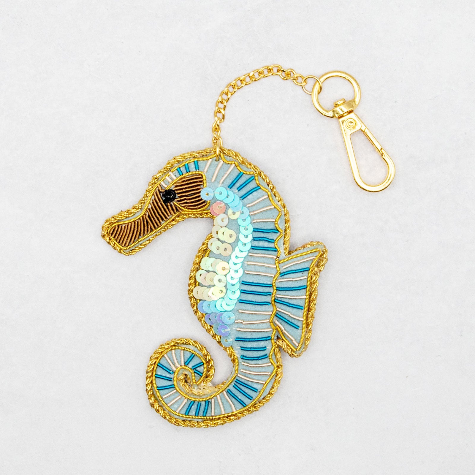 タツノオトシゴをモチーフにしたザリ刺繍のチャームです。