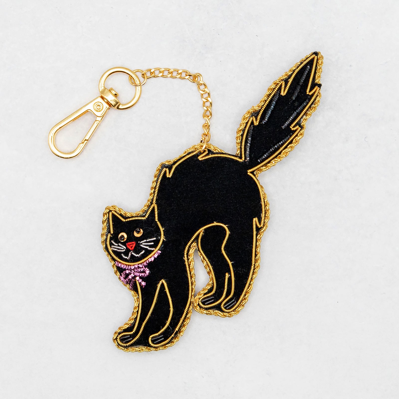 COTTAGE/コテージ ザリ刺繍 キーホルダー ブラックキャット