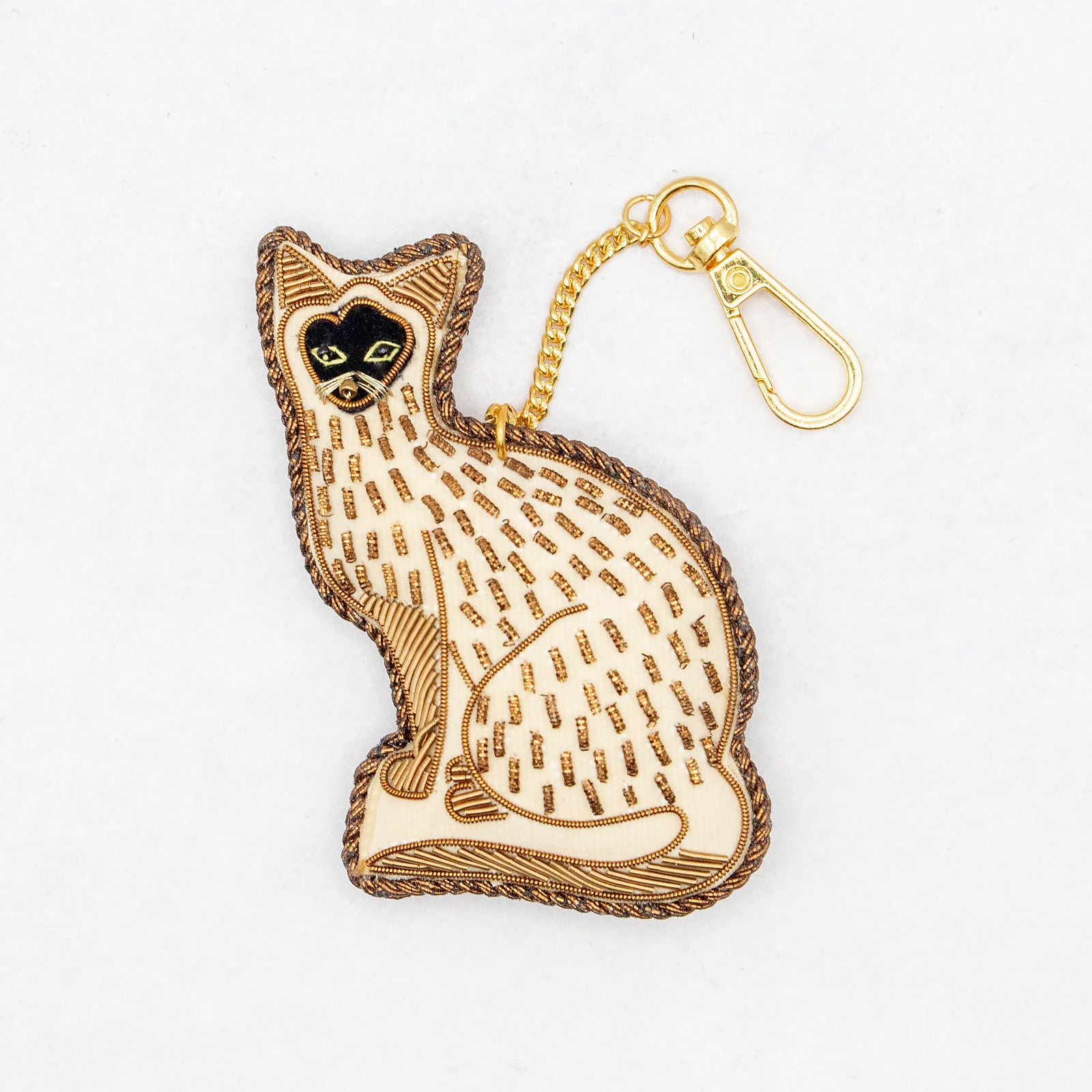 COTTAGE/コテージ ザリ刺繍 キーホルダー ネコ