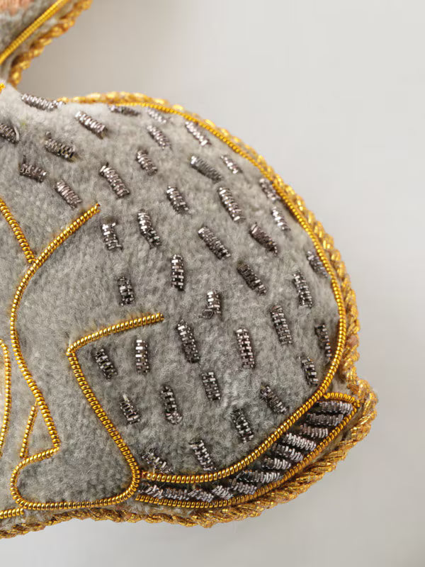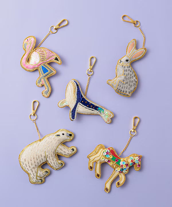 インドの伝統的な刺繍方法である「ザリ刺繍」のキーホルダー。