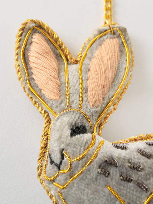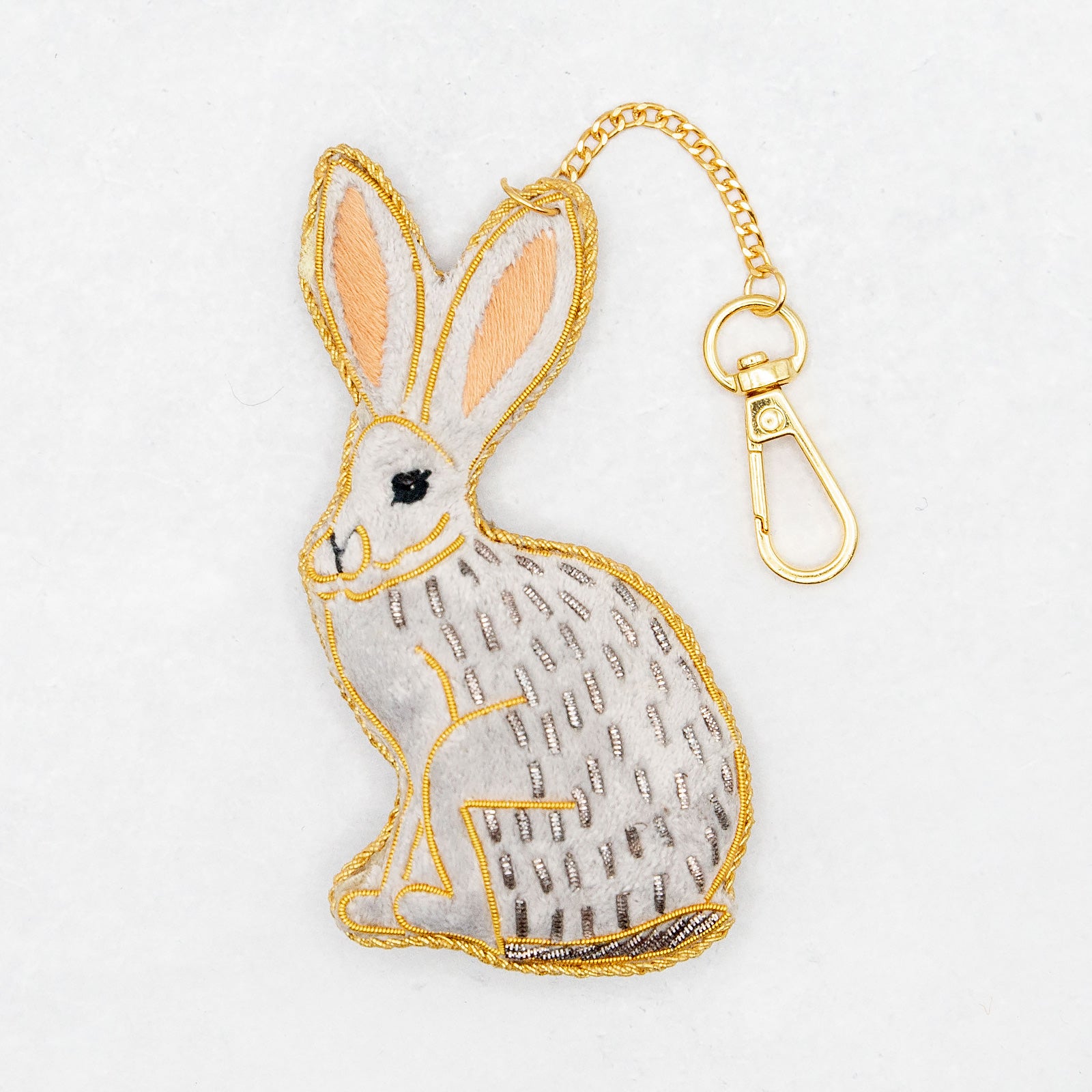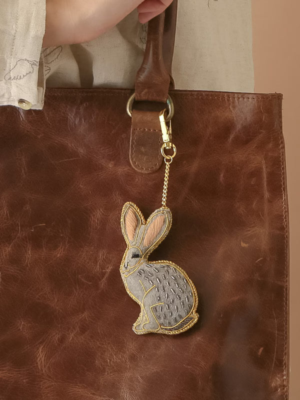 COTTAGE/コテージ ザリ刺繍 キーホルダー グレーラビット