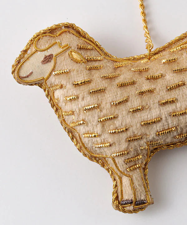インドの職人が一針ずつ丁寧に仕上げた、ヒツジモチーフのバッグチャームです。独特なフォルムに繊細なビーズや金糸のザリ刺繍があしらわれ、角度によって輝きが変わる一点もののアートピースとしておすすめです。サイズも携帯にちょうどよく、バッグや鍵、ポーチのアクセントに最適です。