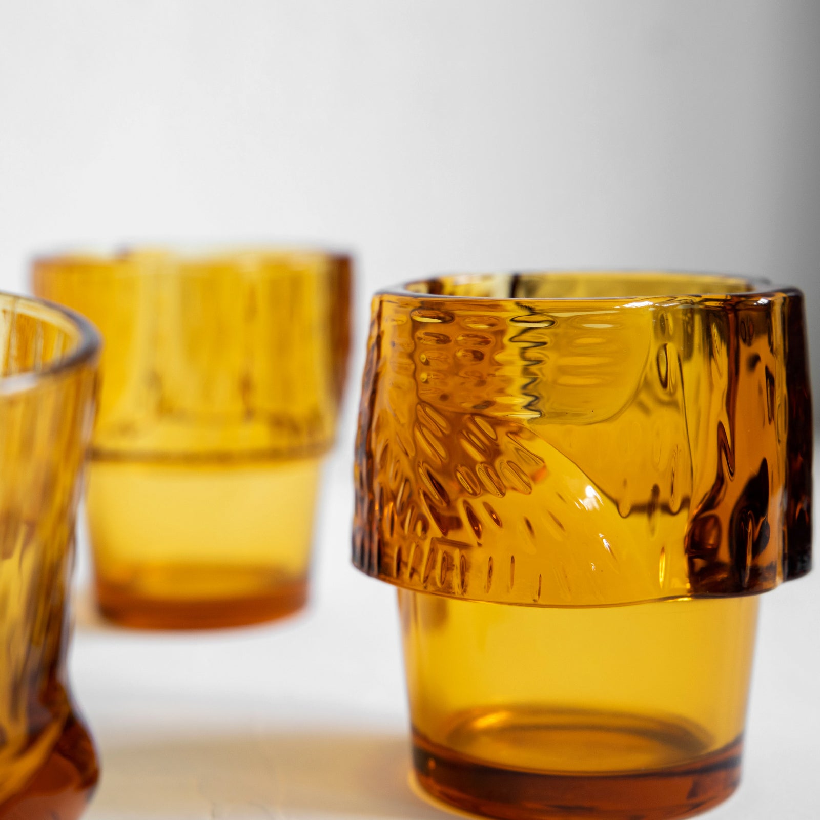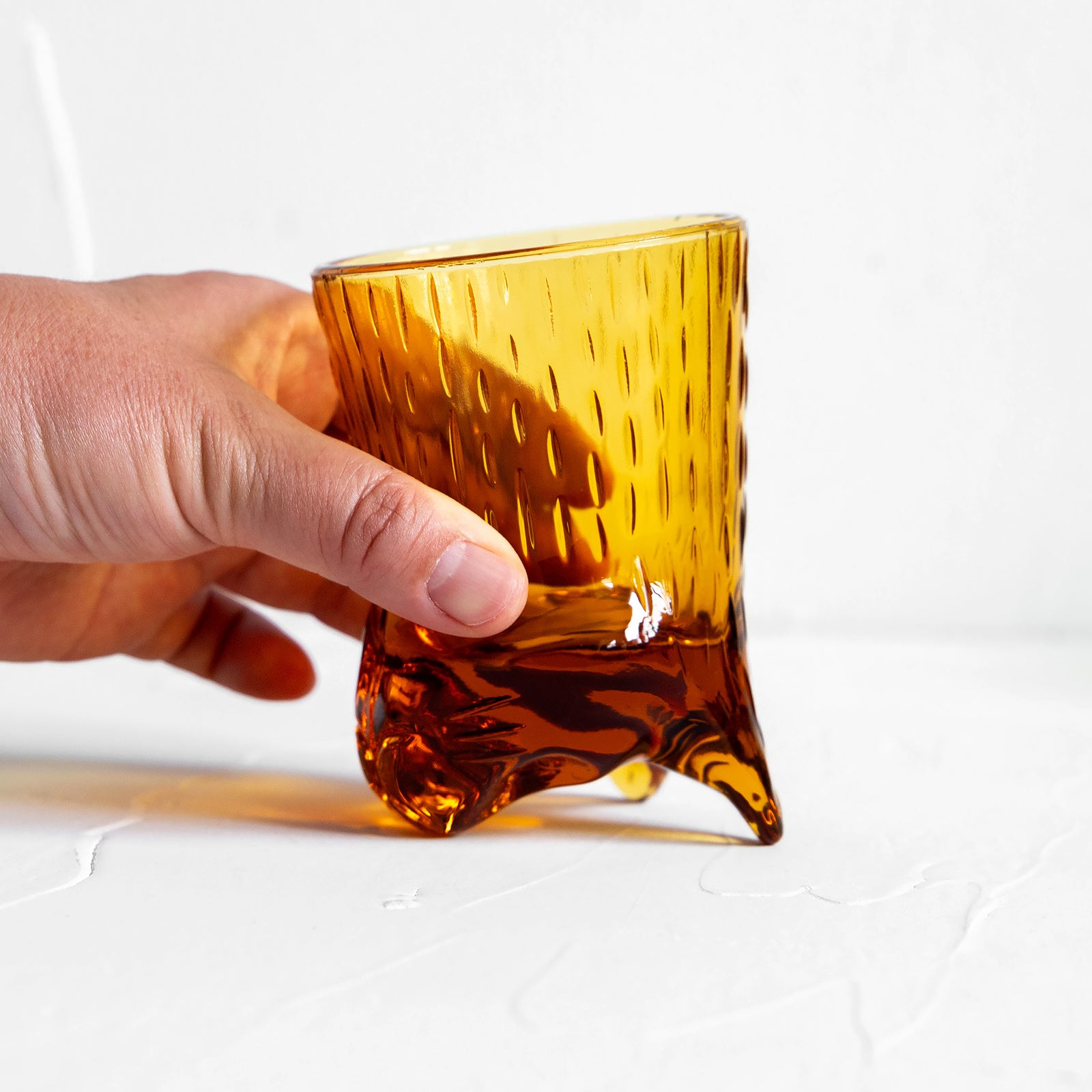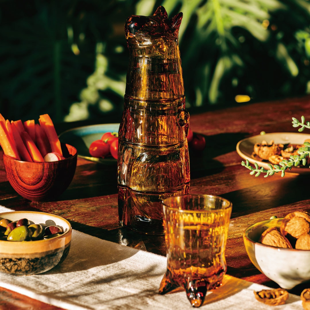 上下を逆にするとグラスに早変わり。どこかレトロな印象なアンバーカラーは季節を問わず使えるのもうれしい。