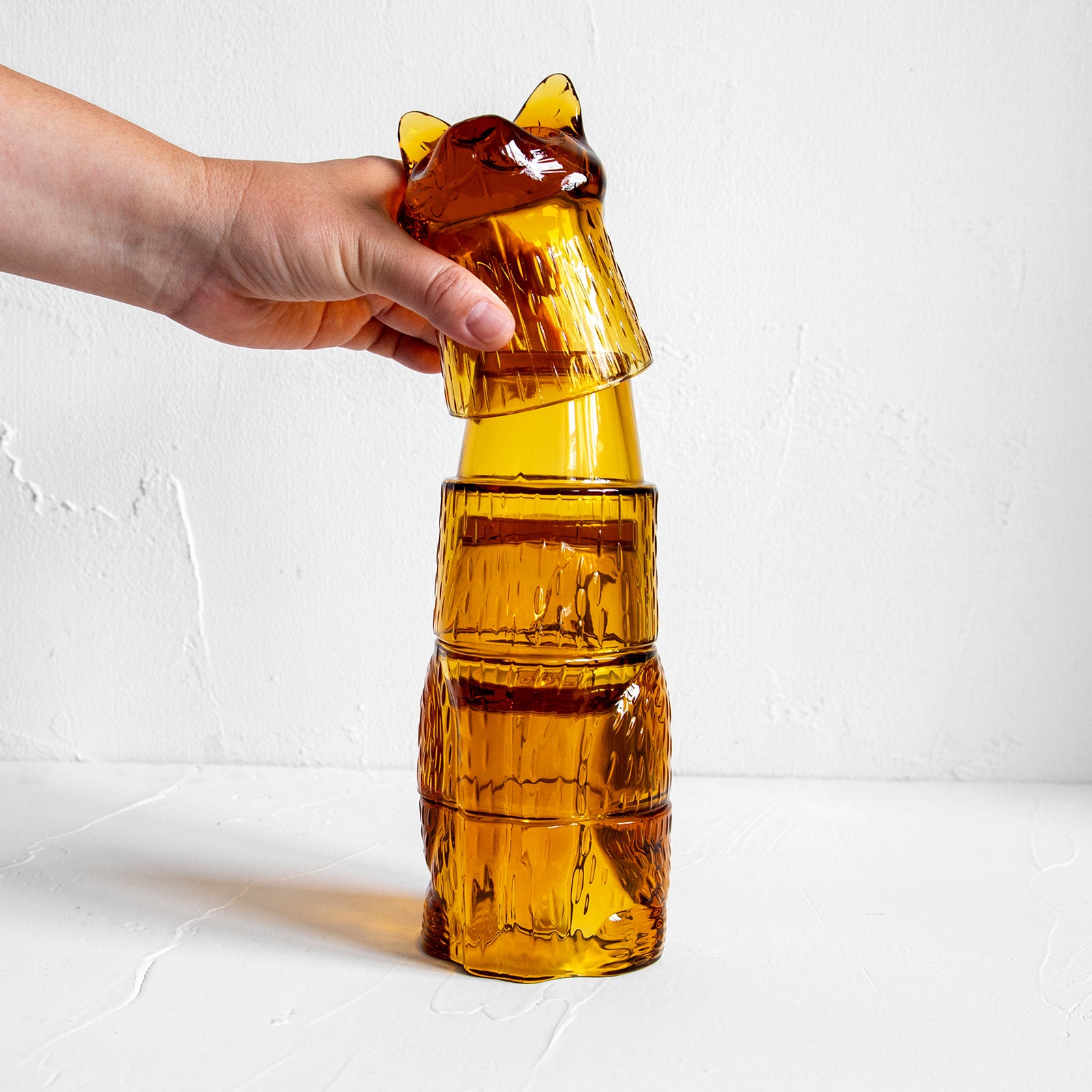 4pcsのグラスを積み重ねることで猫のモチーフとなるスタッキンググラス。