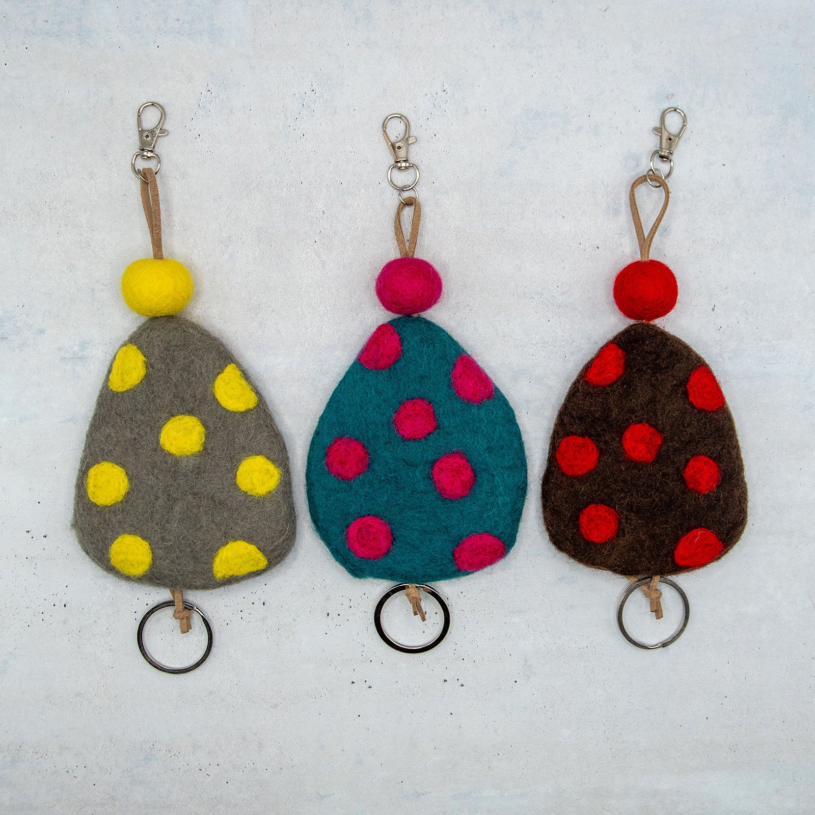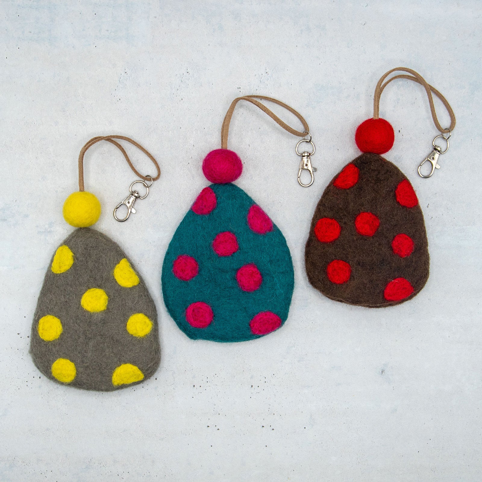 フェアトレード 羊毛フェルト 水玉 ドット キーケース