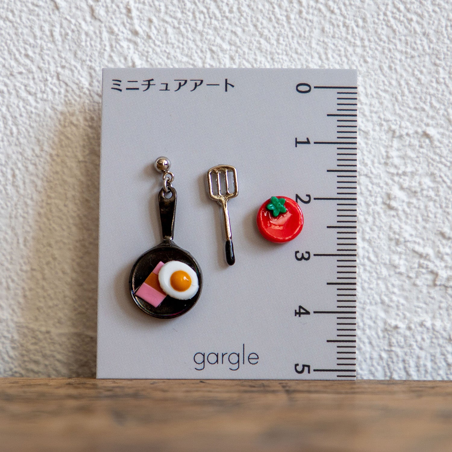 美味しそうな目玉焼きとトマトをいつでも身につけていられるミニチュアアートピアス。