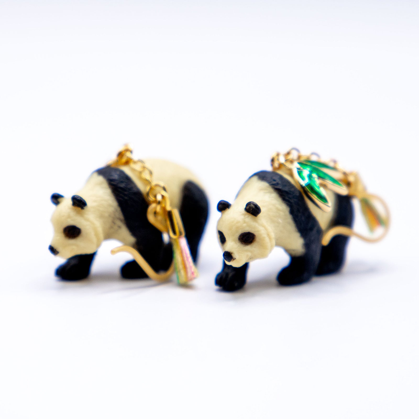リアルなミニチュアのパンダが目を惹く、アイテムです。小さなタッセルや、笹の葉が組み合わせてあり、楽しい気持ちにさせてくれます。
