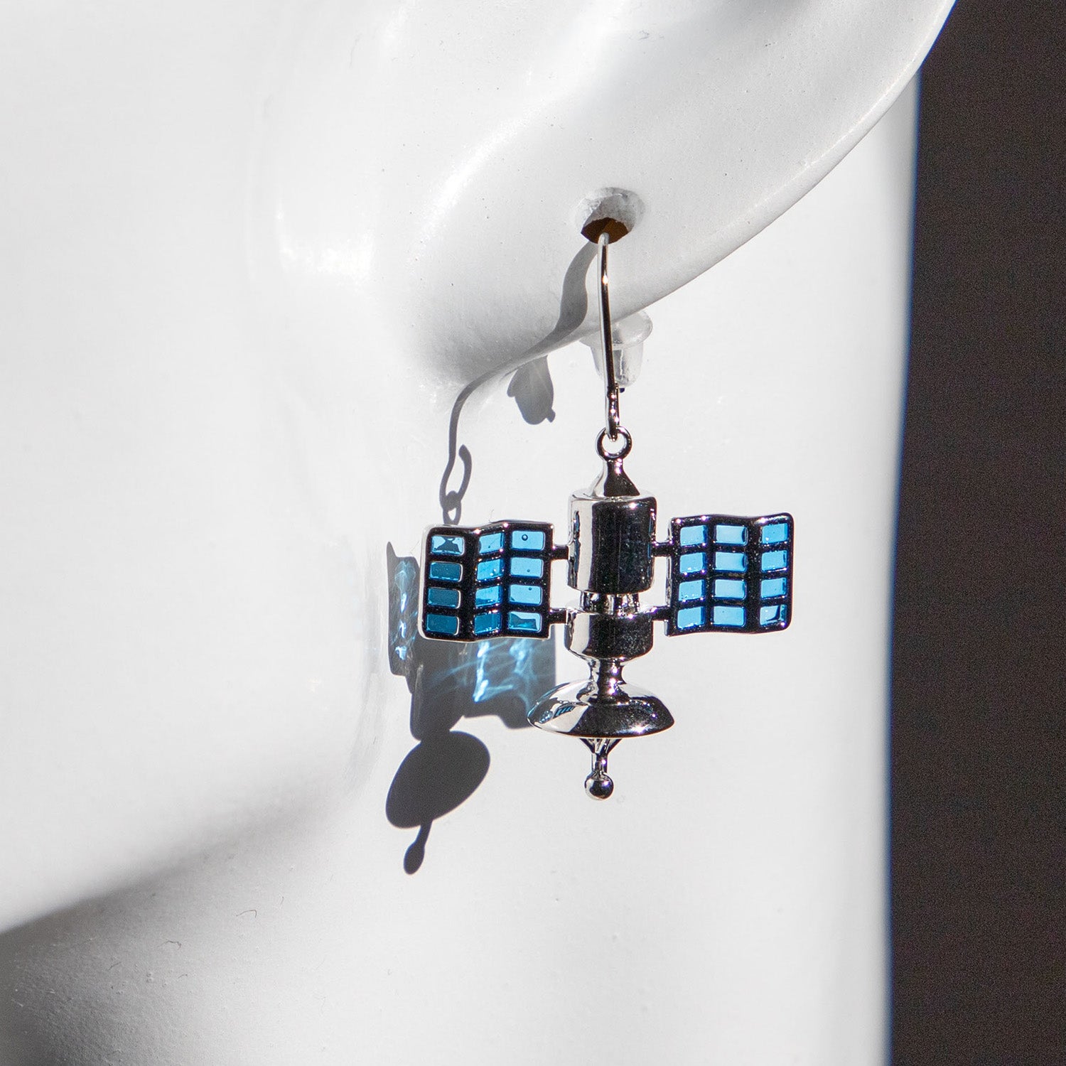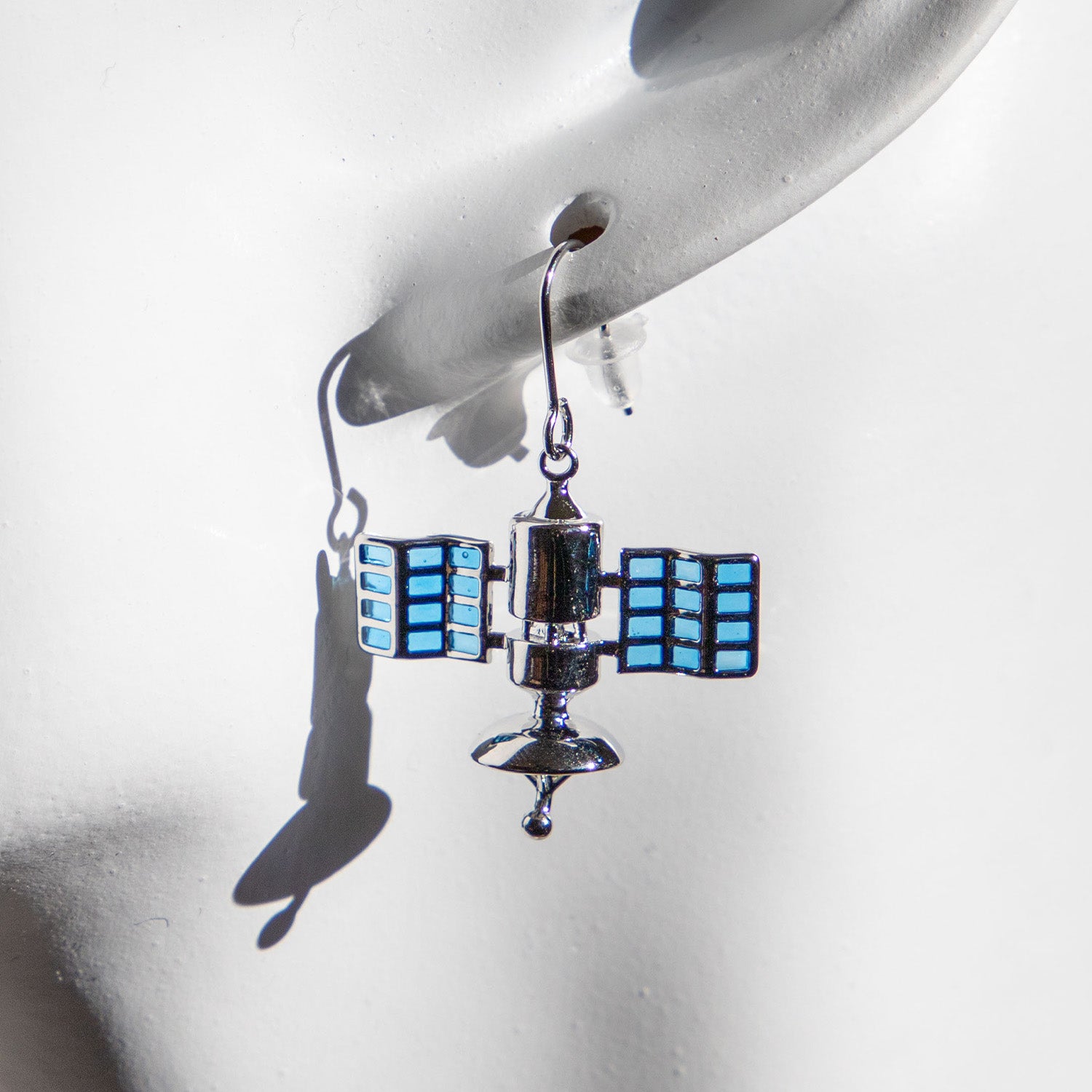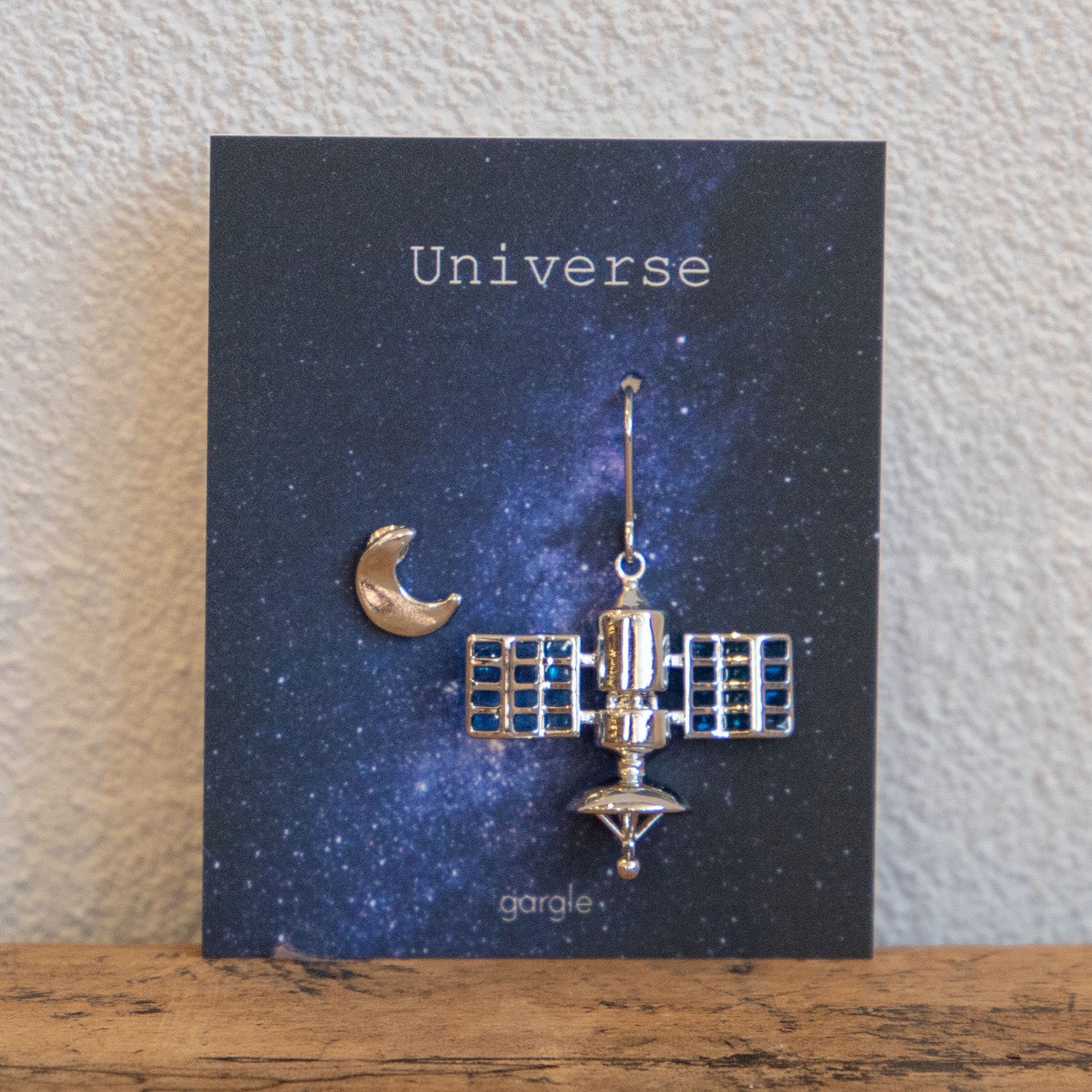 最後のフロンティア「宇宙」を様々な視点からモチーフにするユニバースシリーズです。地球のすぐ上でくるくると回る、人工衛星がモチーフになったピアスです。