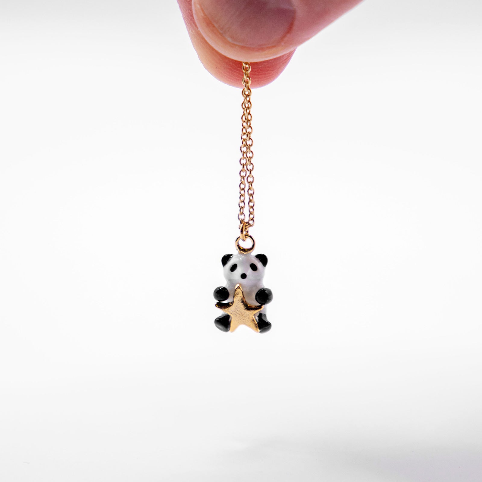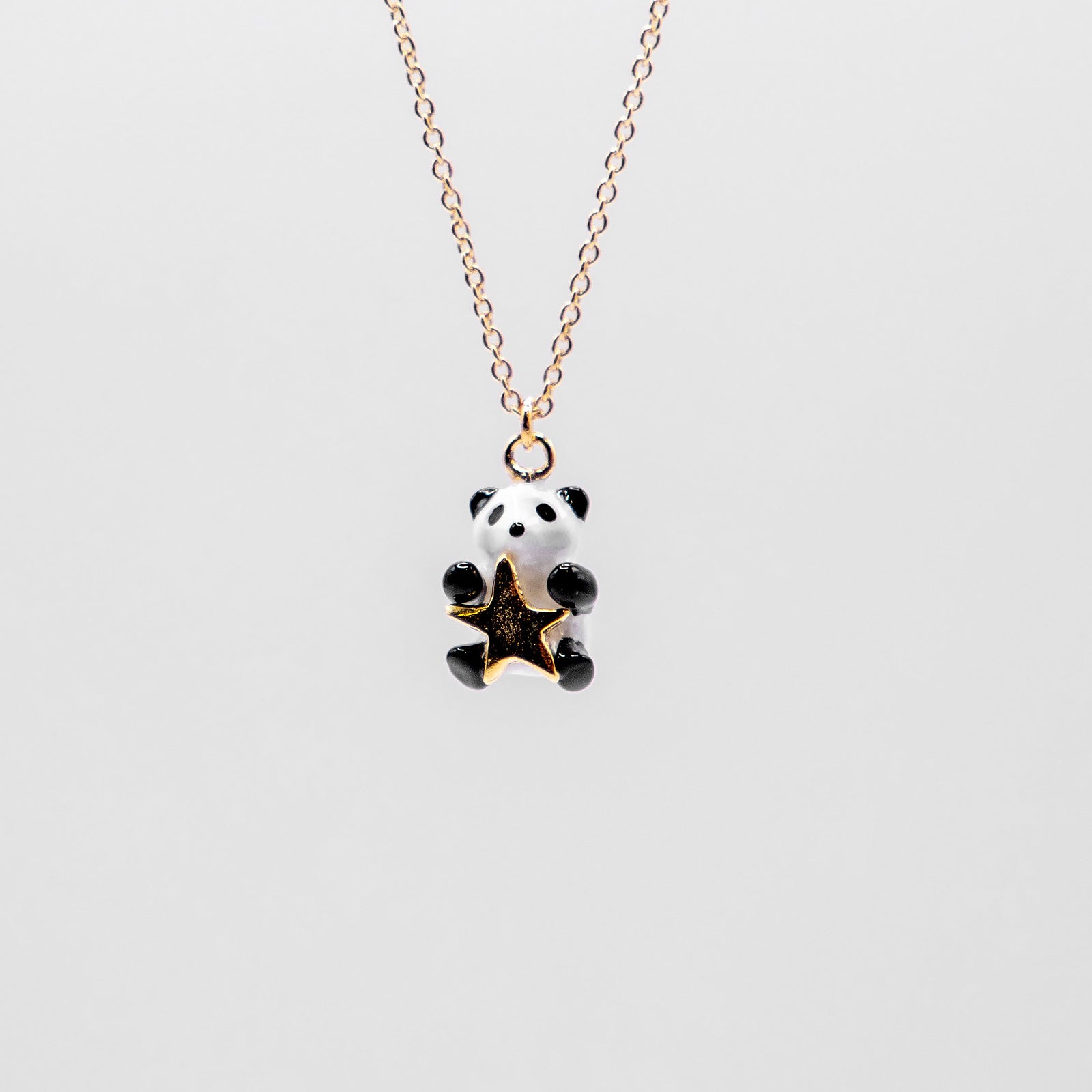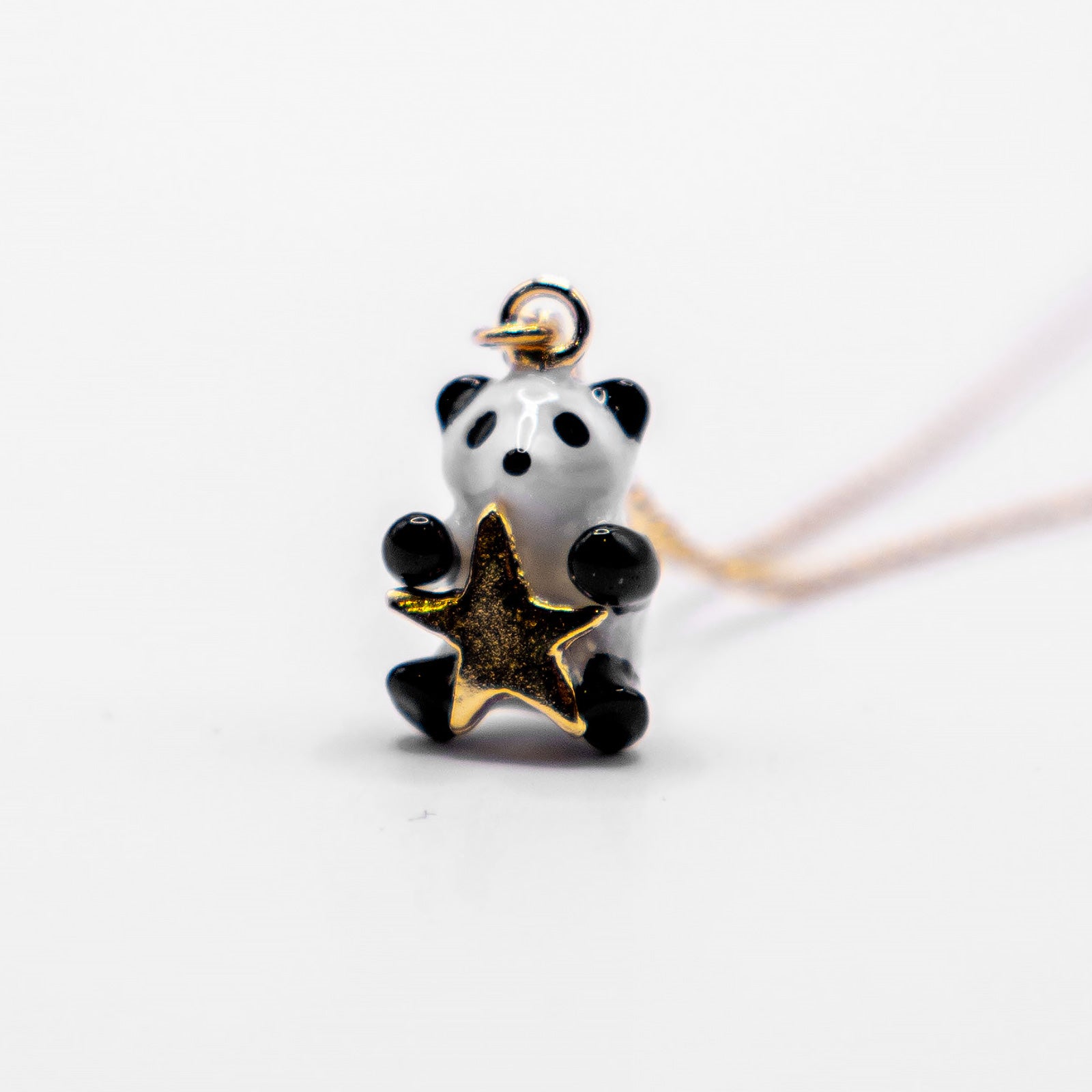 小さな星をぎゅっと抱えたパンダが可愛らしい、上品で愛らしいネックレスです。