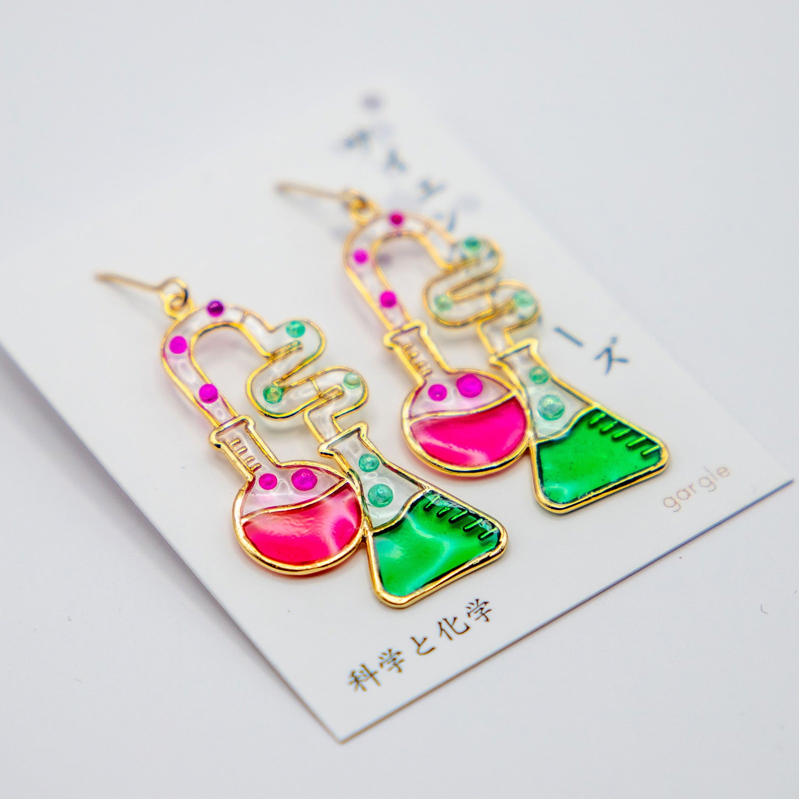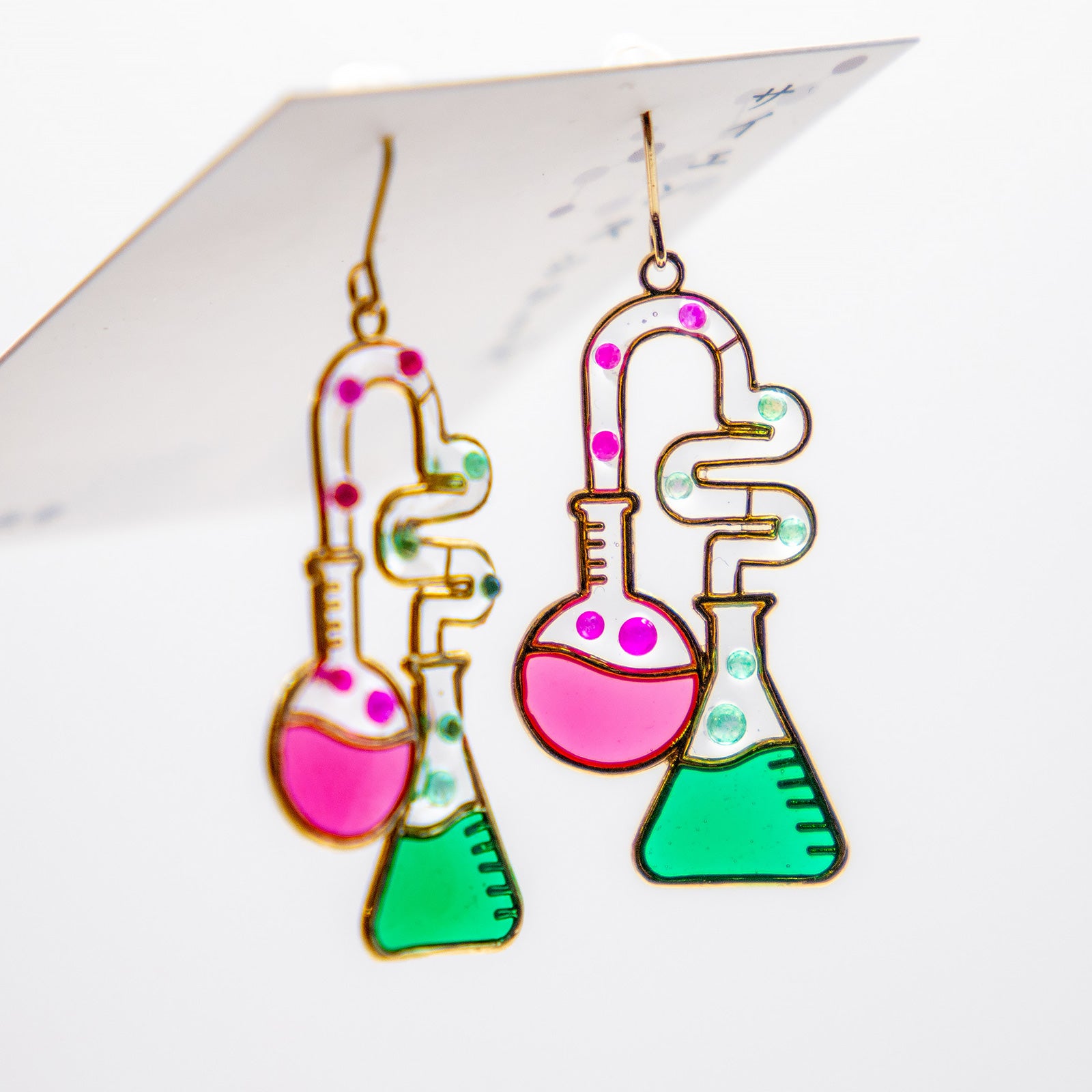 カラフルな色が可愛い実験器具のピアス。